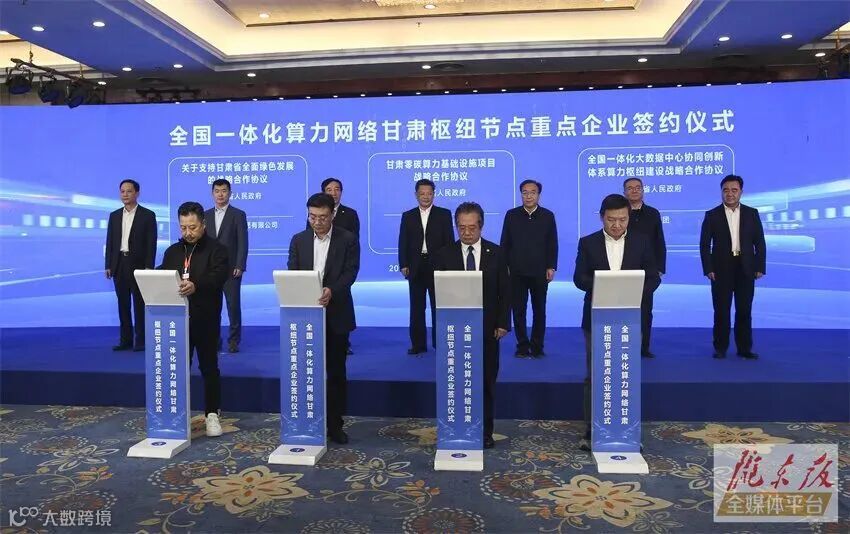 全国一体化算力网络甘肃枢纽节点重点企业签约仪式上,甘肃省庆阳市与7家全国一体化算力网络甘肃枢纽节点重点企业签署合作协议。
