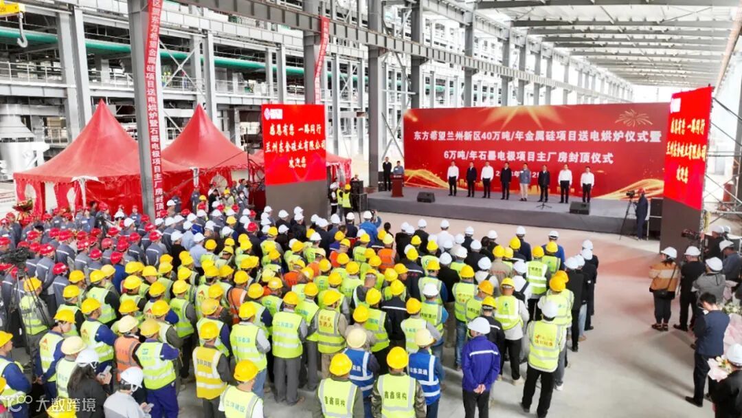 当天,项目现场还举行了年产6万吨石墨电极项目主厂房封顶仪式。