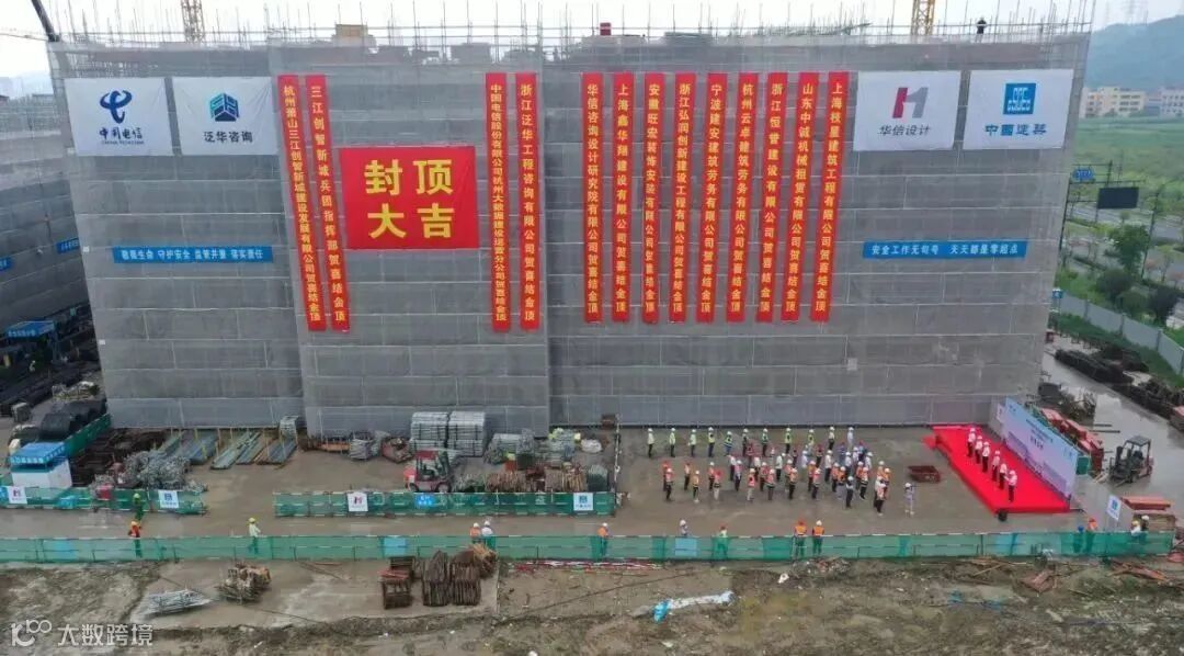 萧山经济技术开发区三江创智新城的首个省重大产业项目——中国电信杭州数据中心项目1号楼数据中心主体结构顺利封顶。