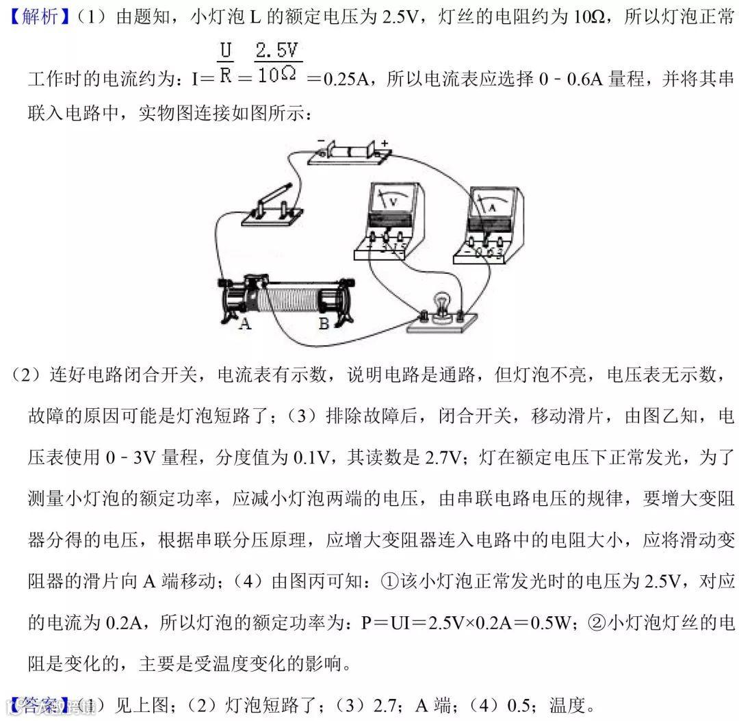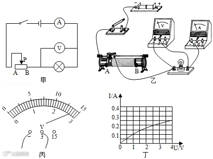 (3)排除故障后,闭合开关,移动滑片,电压表的示数如图丙所示,其示数为________V.为了测量小灯泡的额定功率,应将滑动变阻器的滑片向________(选填“A端”或“B端”)滑动。