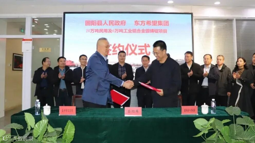 11月6日,东方希望集团与包头市固阳县政府签署“20万吨民用及6万吨工业铝合金圆铸锭项目”投资协议。