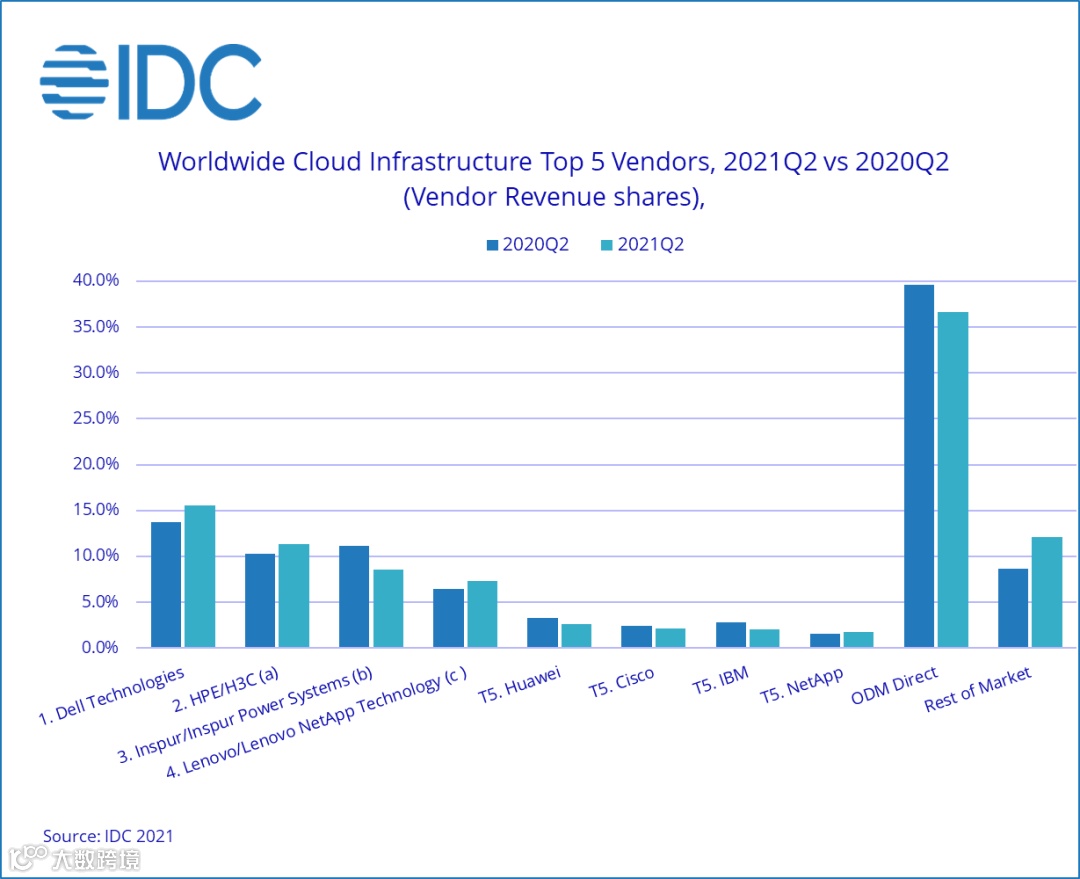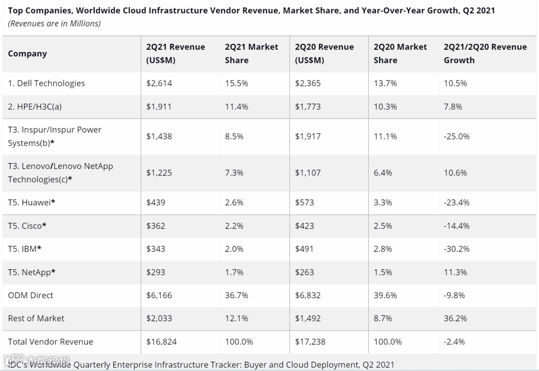 2021 年第二季度,云基础设施计算和存储基础设施产品支出同比下降 2.4%,降至168亿美元。