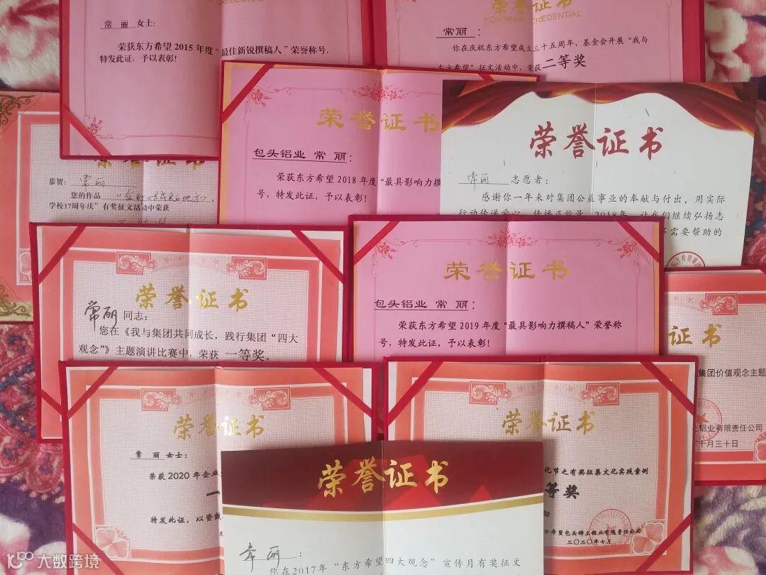 在自己平凡的岗位上,常丽通过自身努力和默默付出,做好本职工作的同时,也将公司各项宣传工作做得有声有色。付出就有回报,各种荣誉也纷至沓来。她连续三年被评为东方希望“最具影响力”撰稿人,她编写的“最佳实践案例”发布率也在集团名列前茅。
