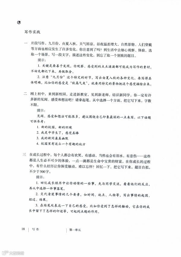 2.搜集资料,选材新颖。可以写:①校园一角的美景。②新学期发生的有意思的事。③我所了解的新学校。④认识的老师、学生等。⑤步入初中,感受到的学习氛围或同学之间的友好气氛。选材要力避陈旧,这样才能吸引人,令人耳目一新。