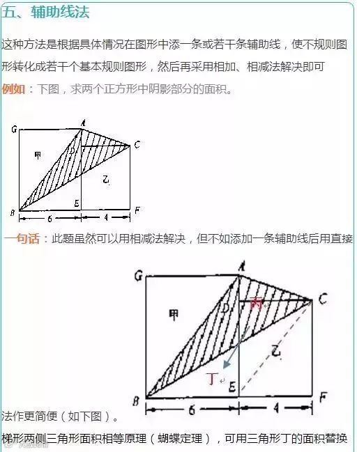 求阴影部分的面积是初中数学的一个重难点,几乎每次考试都会考到。计算这些不规则图形的话,我们可以就采取一些割补、剪拼等方法将它们转化为基本图形的和、差关系,问题就能解决了…下面赶紧来看看这些解题方法吧!