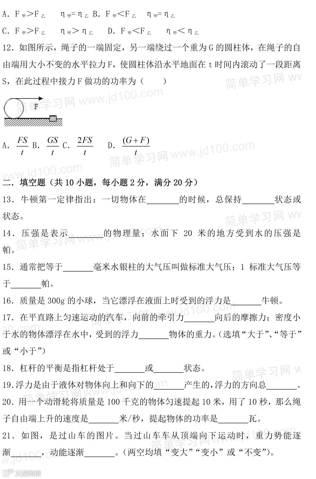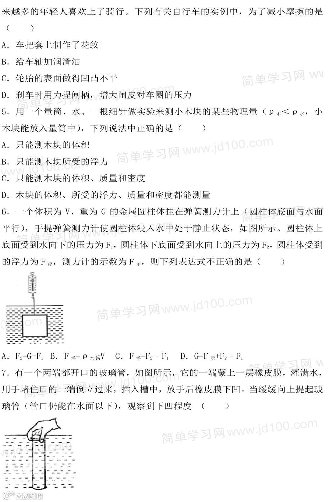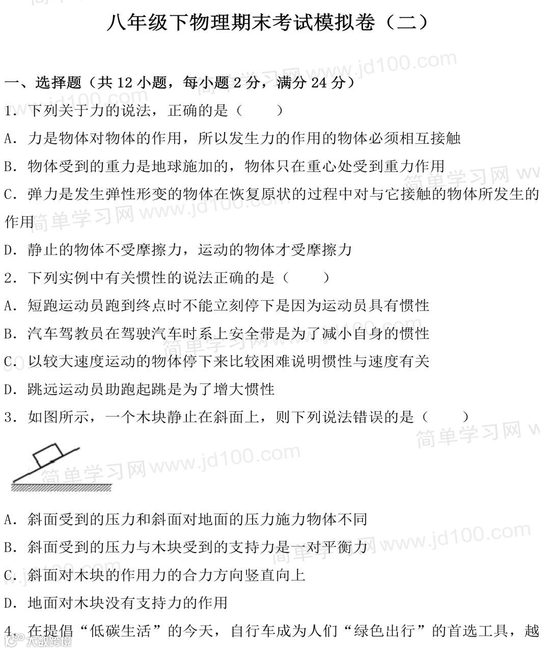 初二物理期末试卷,考前刷一遍,考试得满分!
