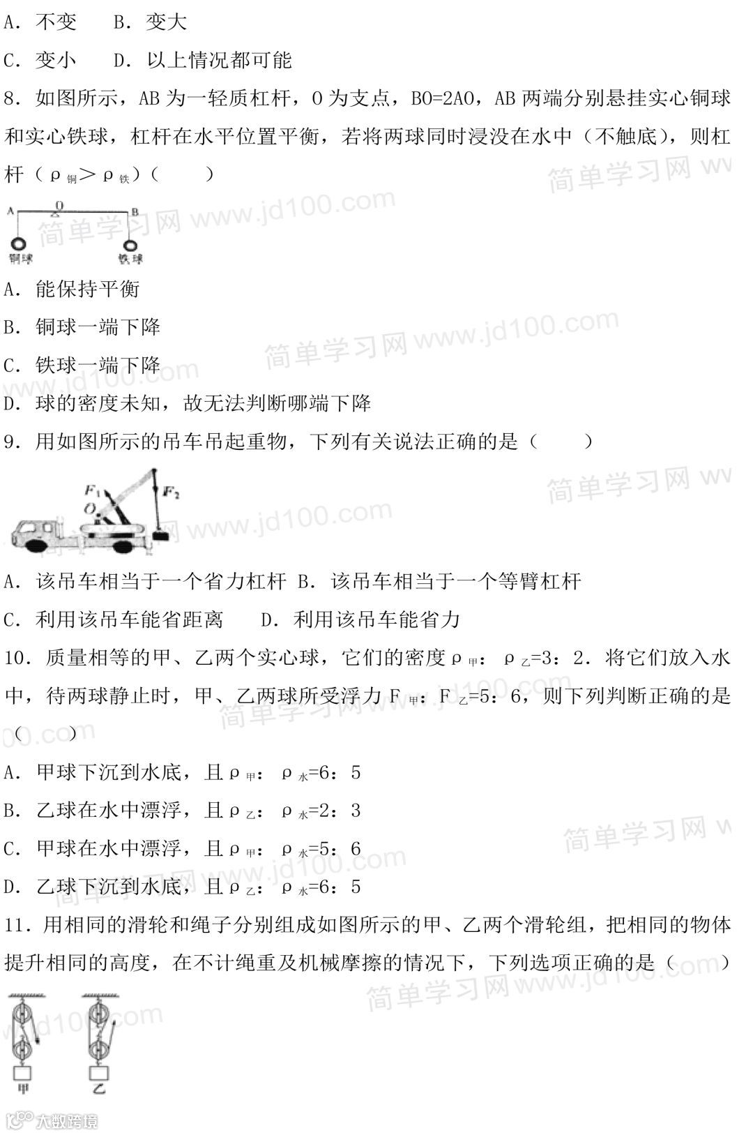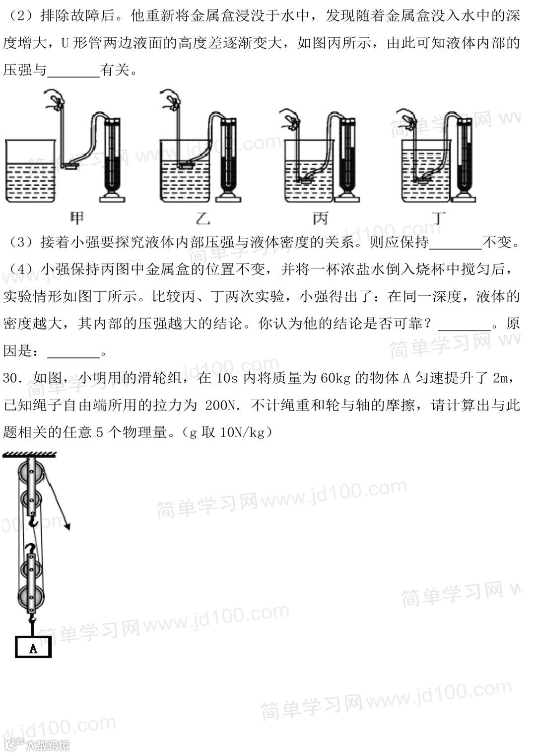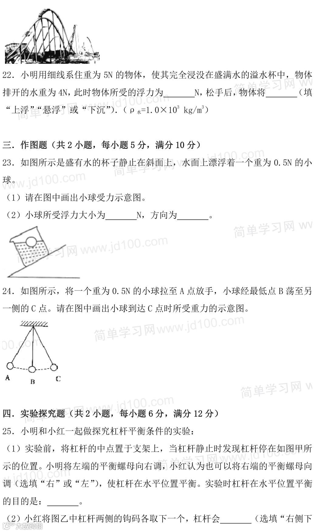 初二物理期末试卷,考前刷一遍,考试得满分!