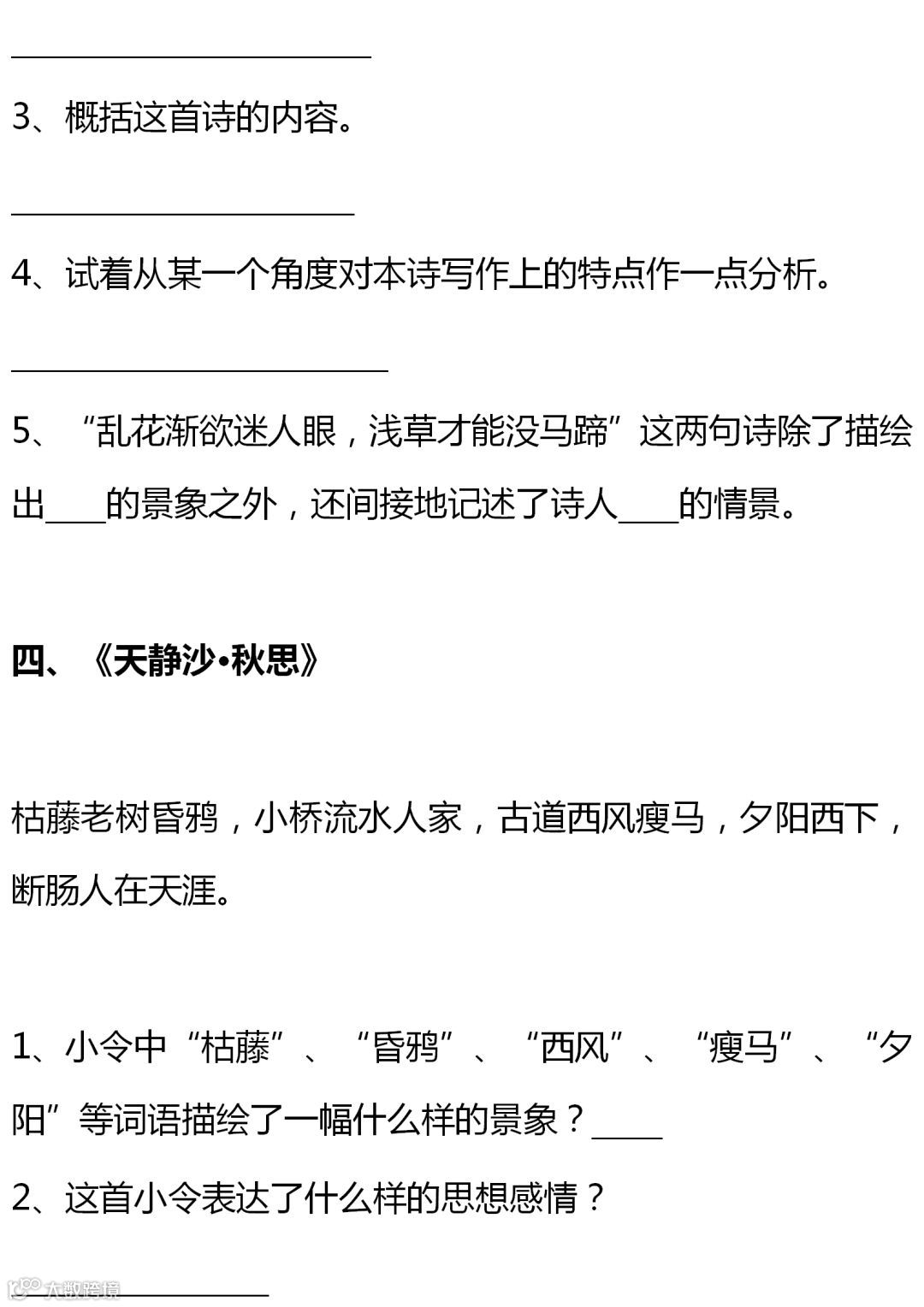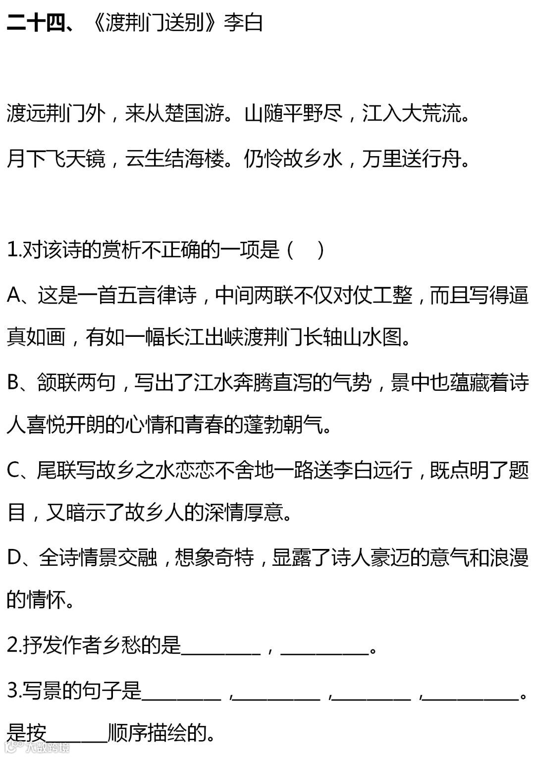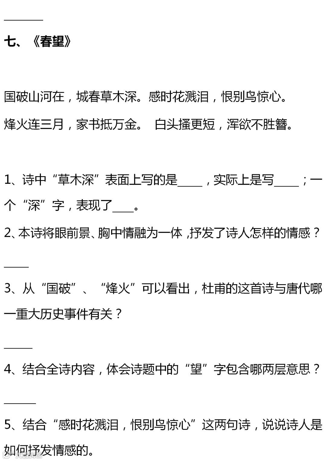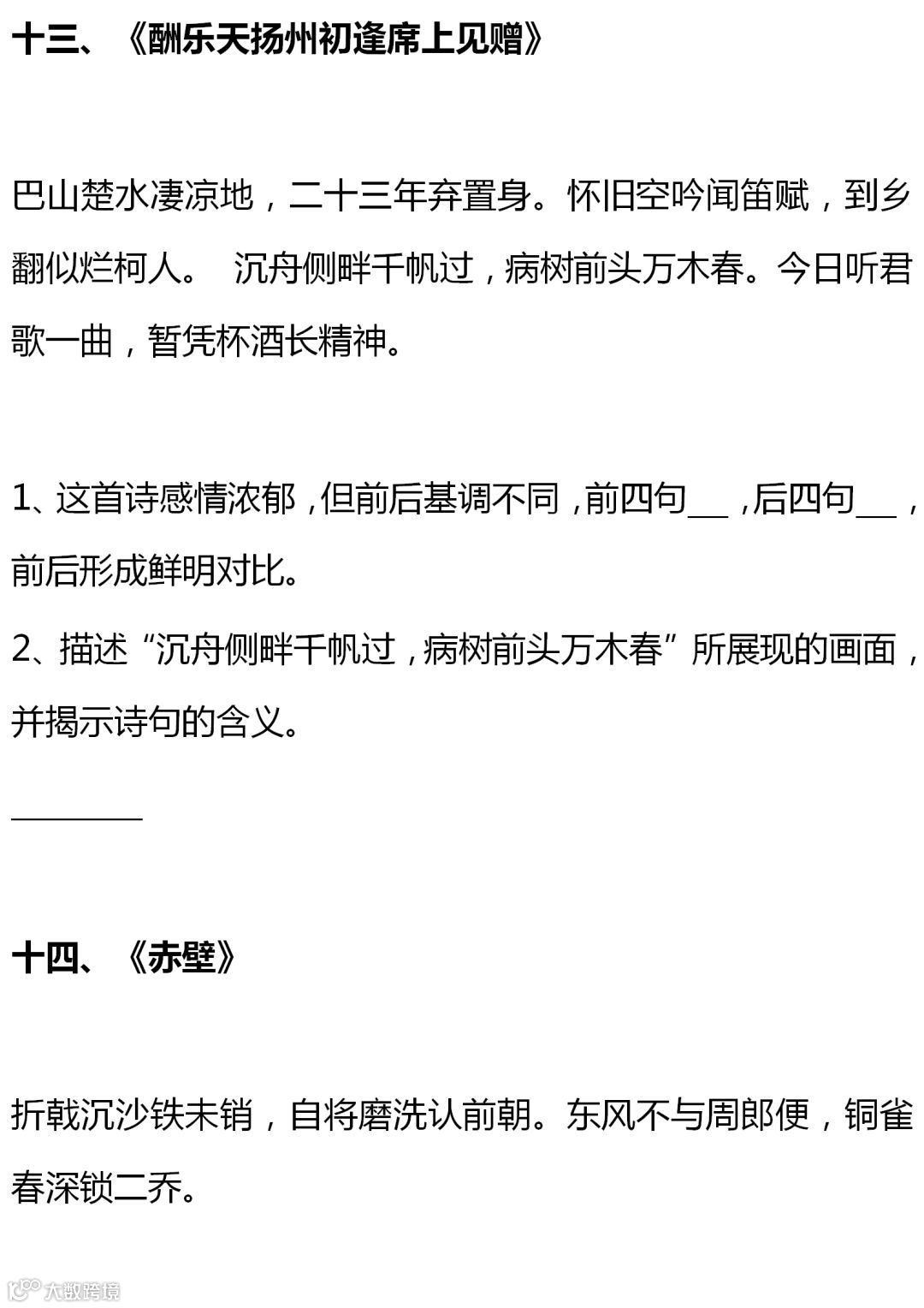 七至九年级语文课内古诗词赏析题大全,背出拿高分!(转给孩子)