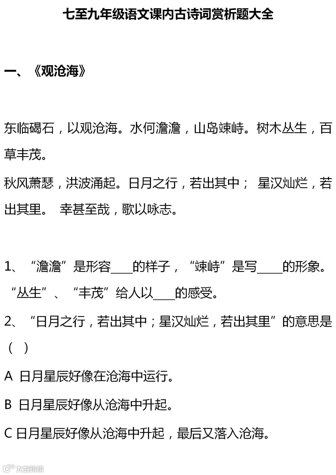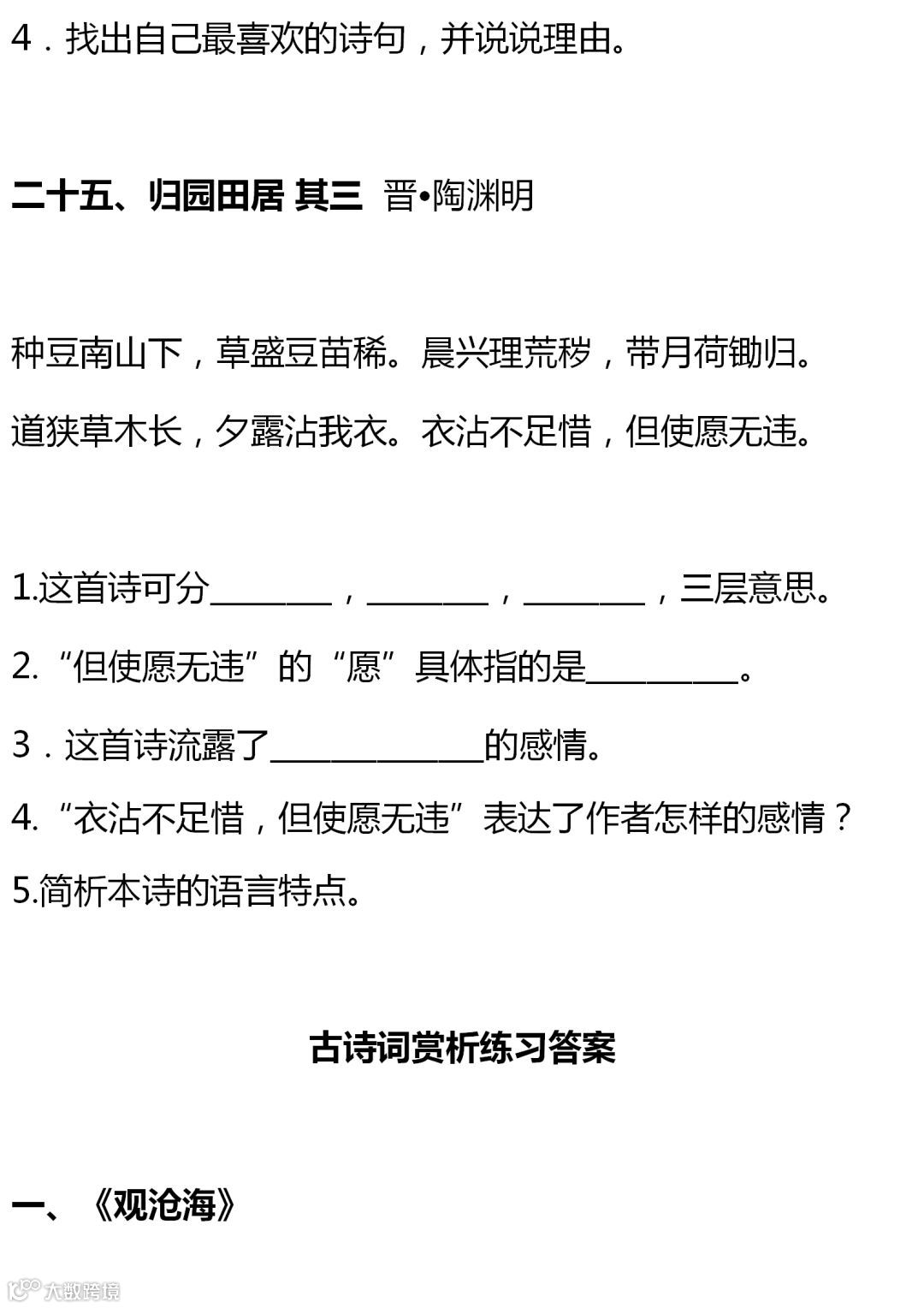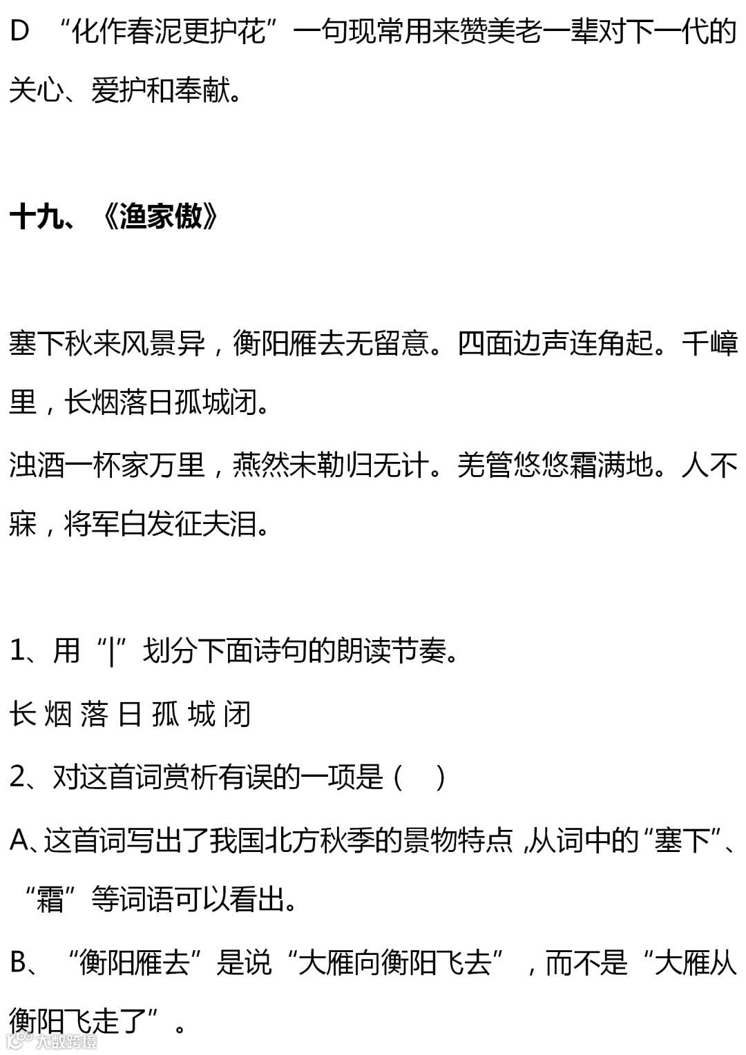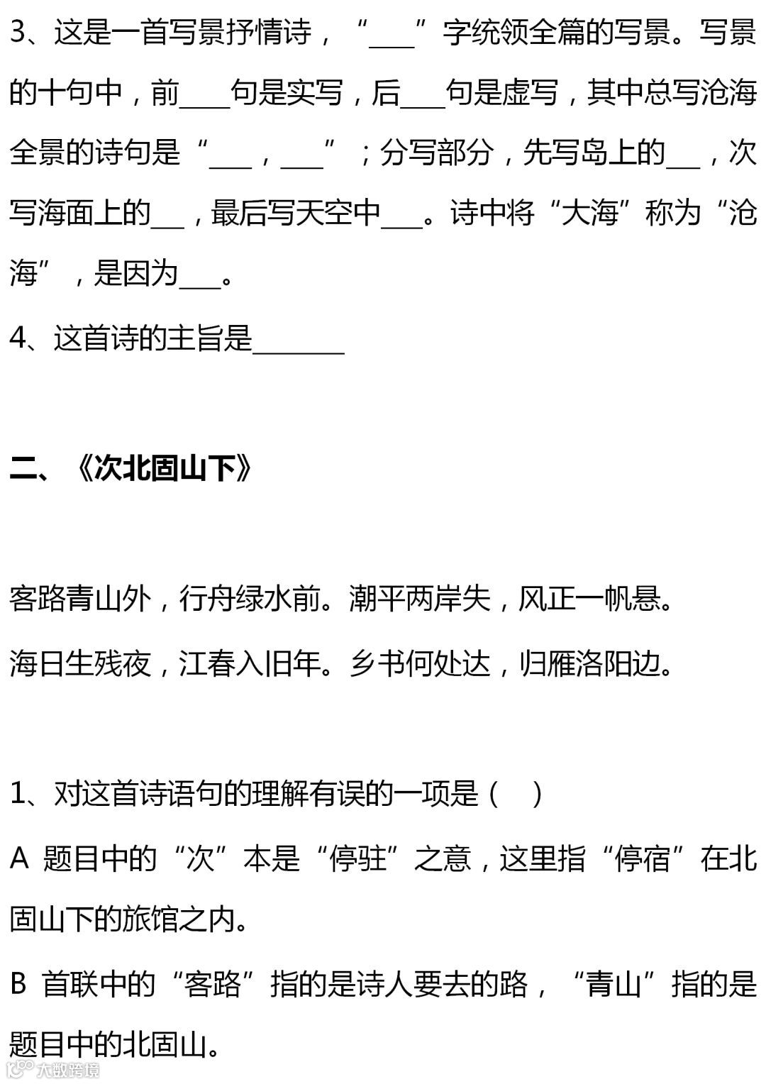 七至九年级语文课内古诗词赏析题大全,背出拿高分!(转给孩子)