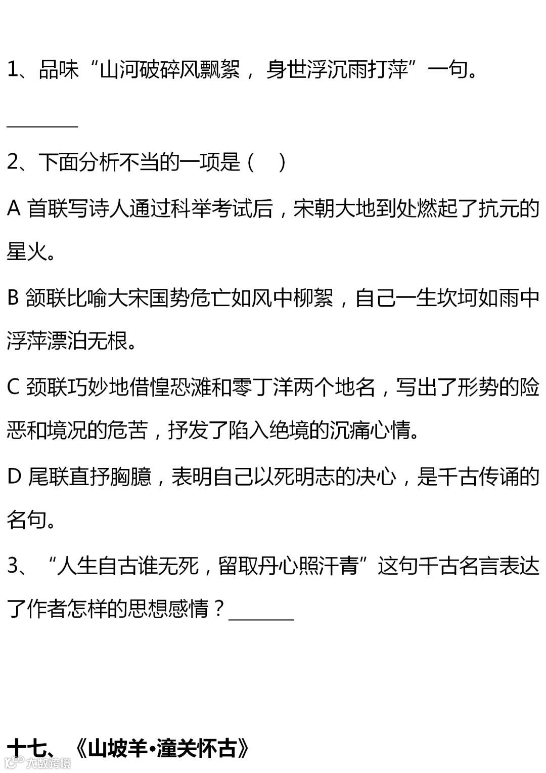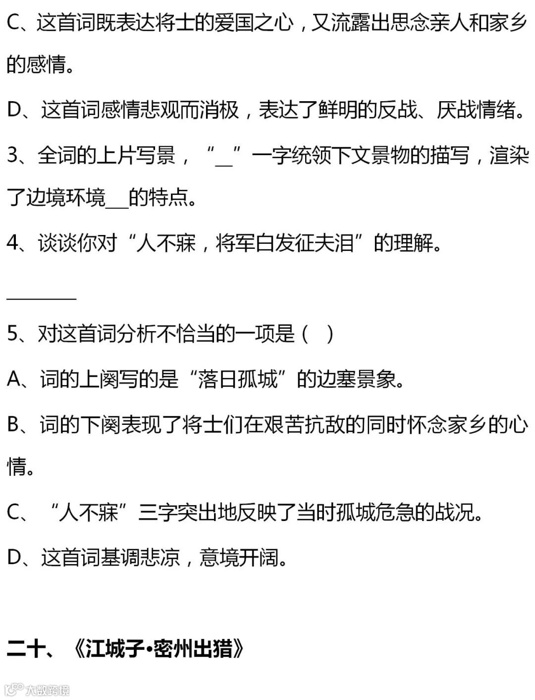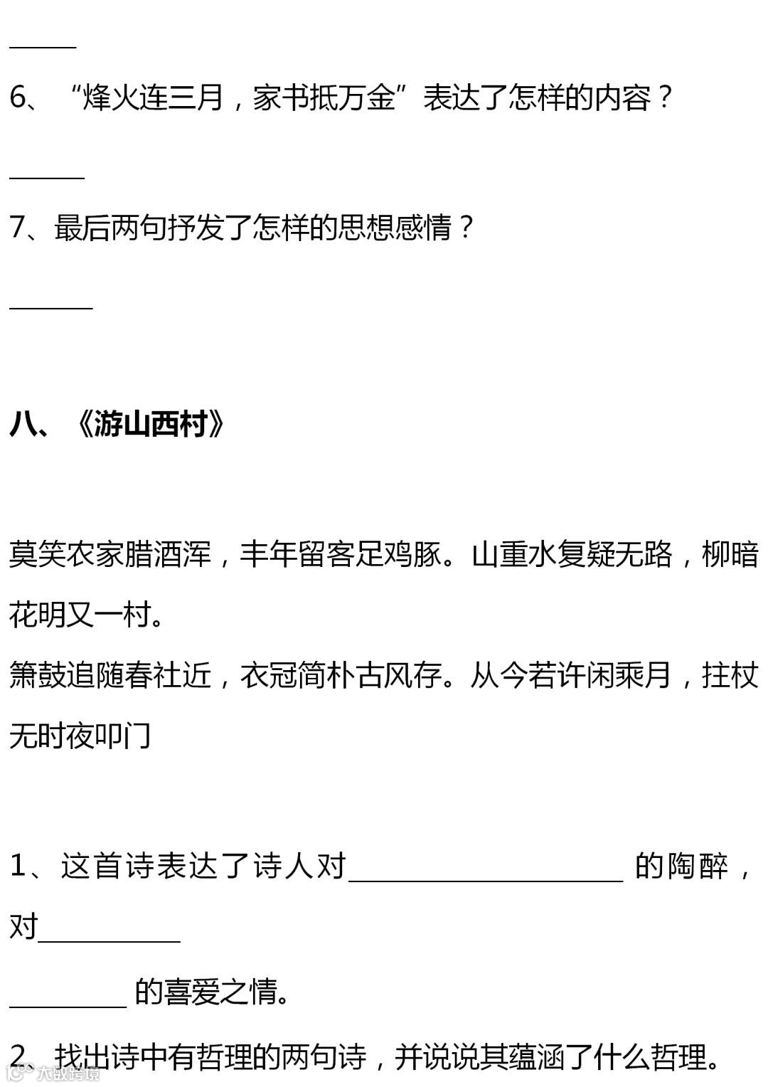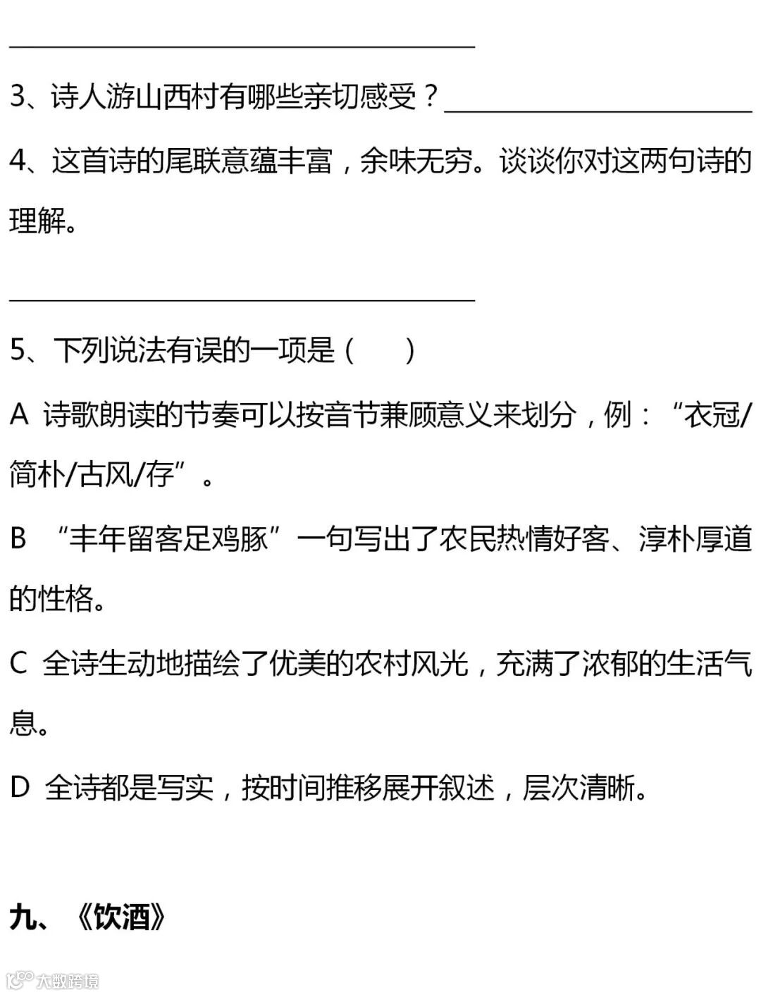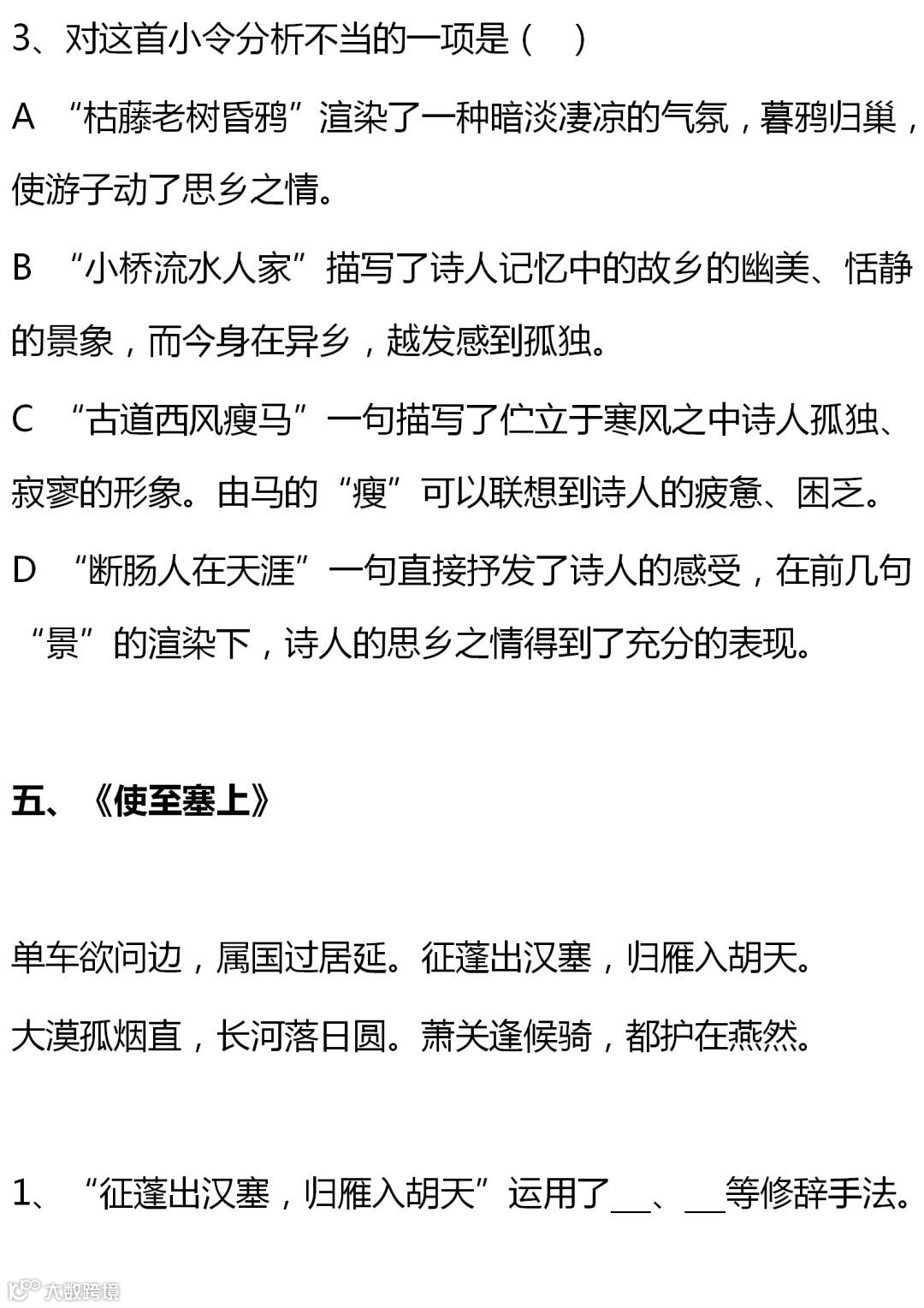 七至九年级语文课内古诗词赏析题大全,背出拿高分!(转给孩子)