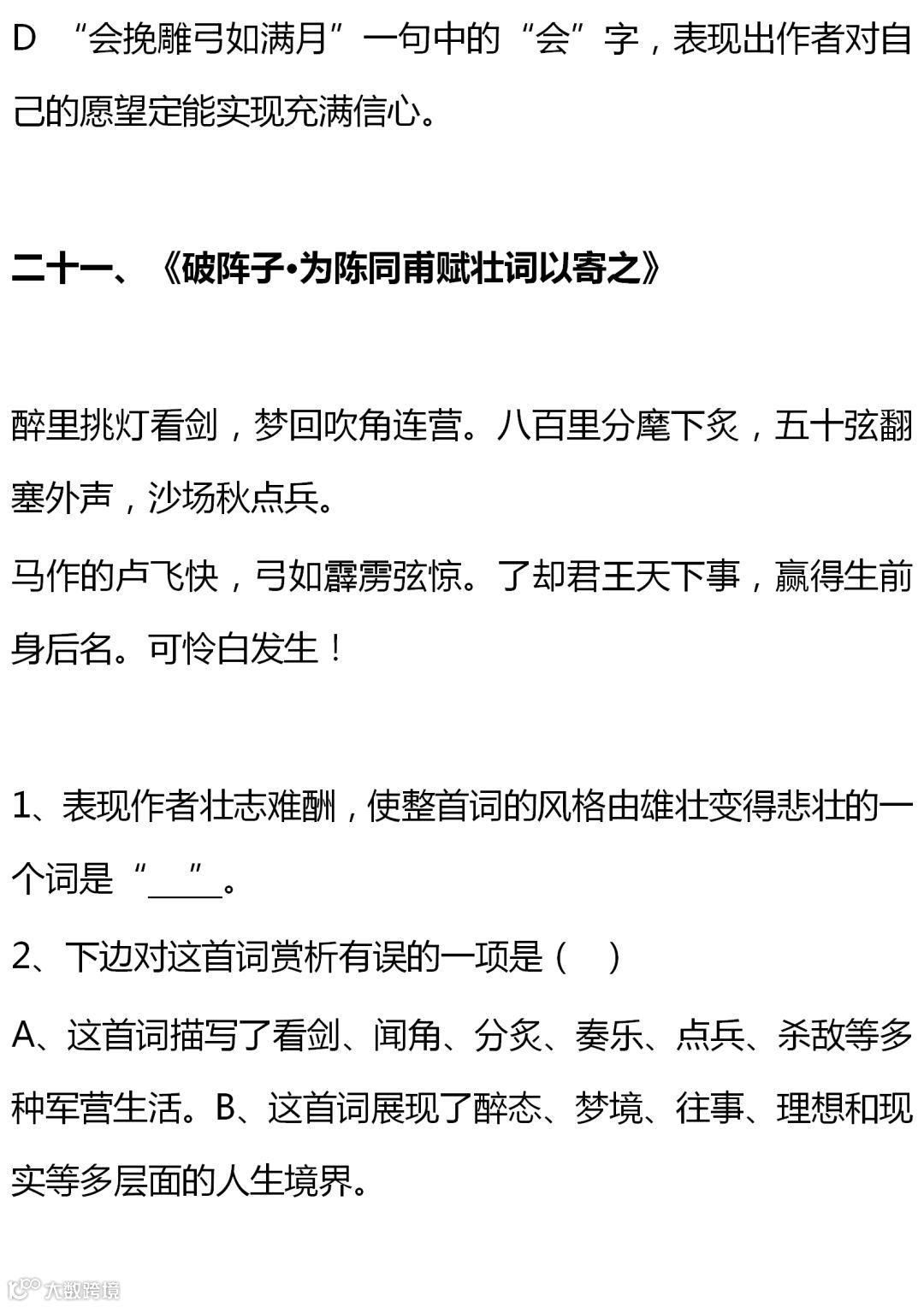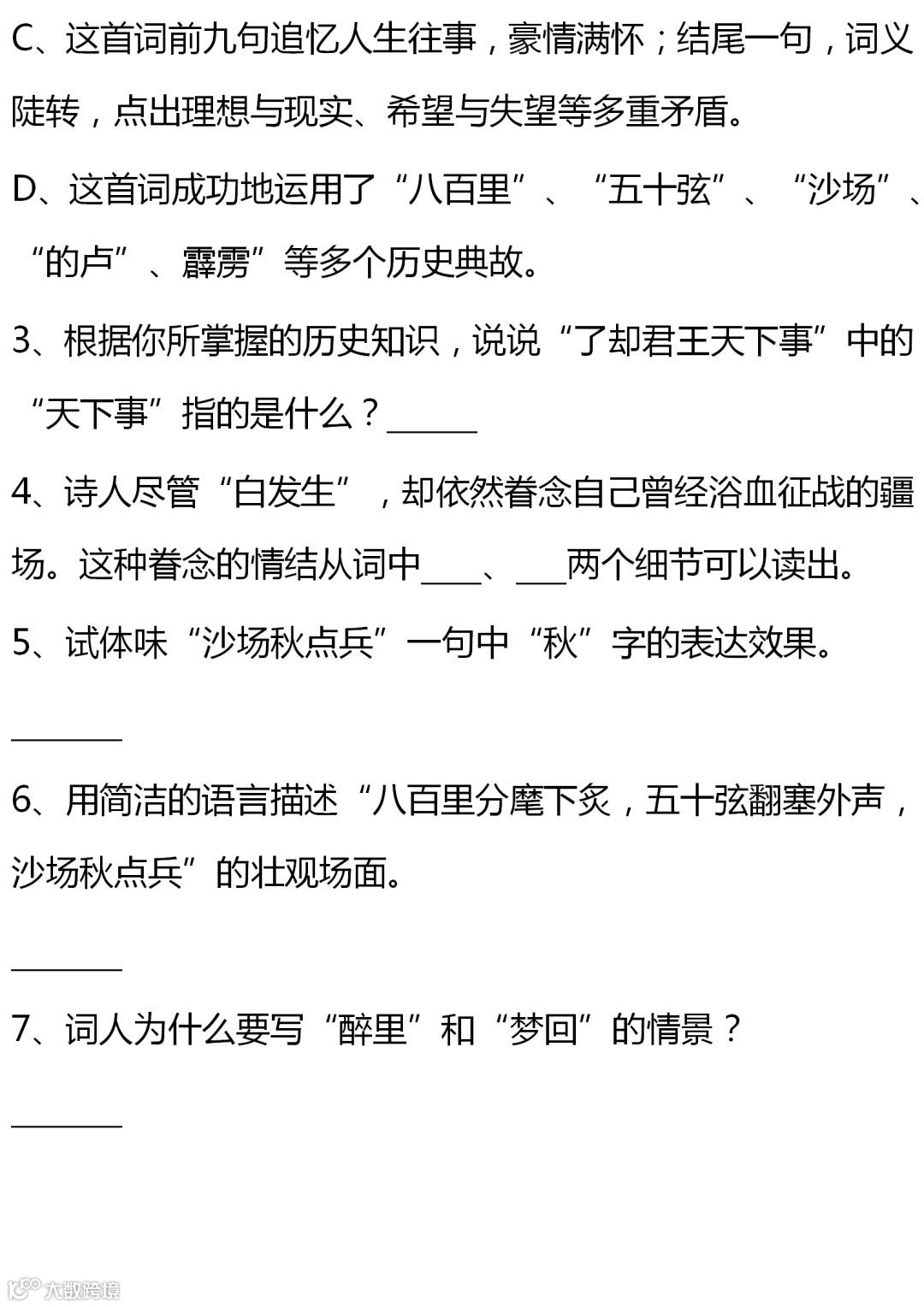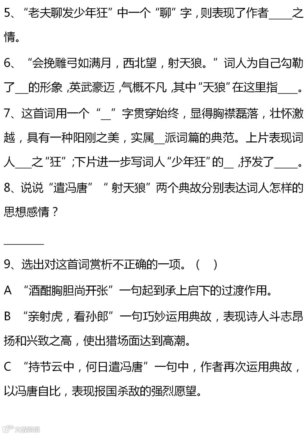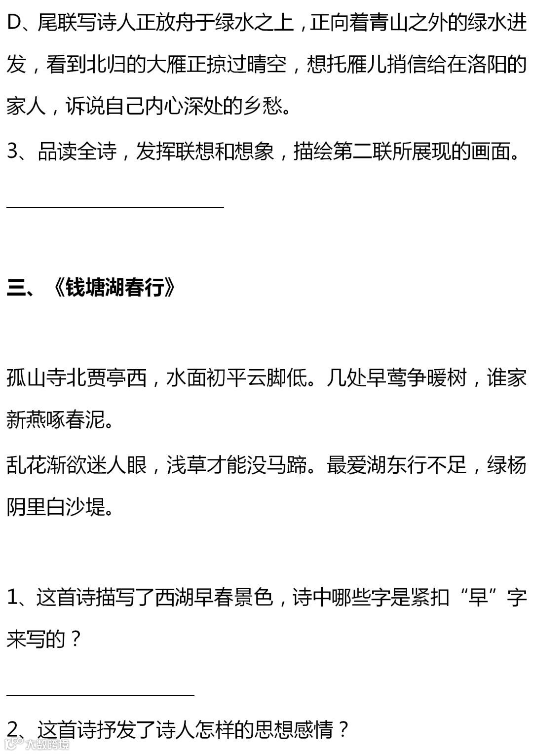 七至九年级语文课内古诗词赏析题大全,背出拿高分!(转给孩子)