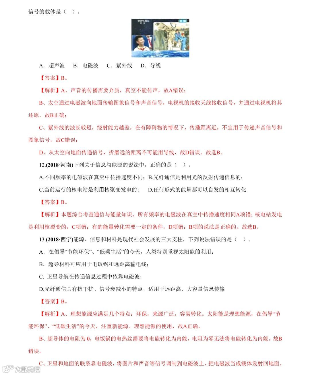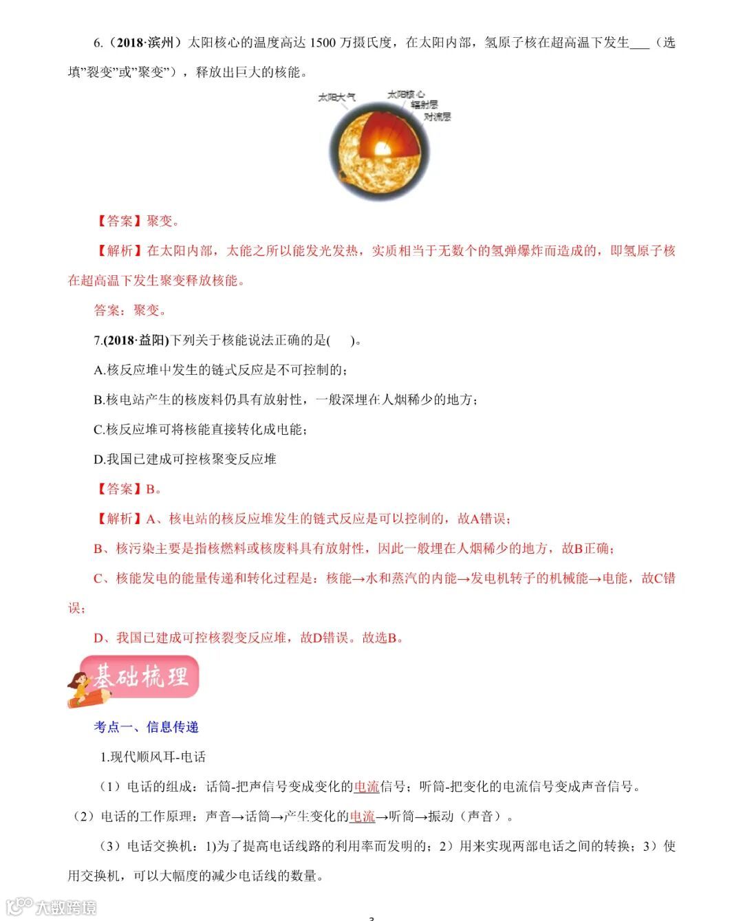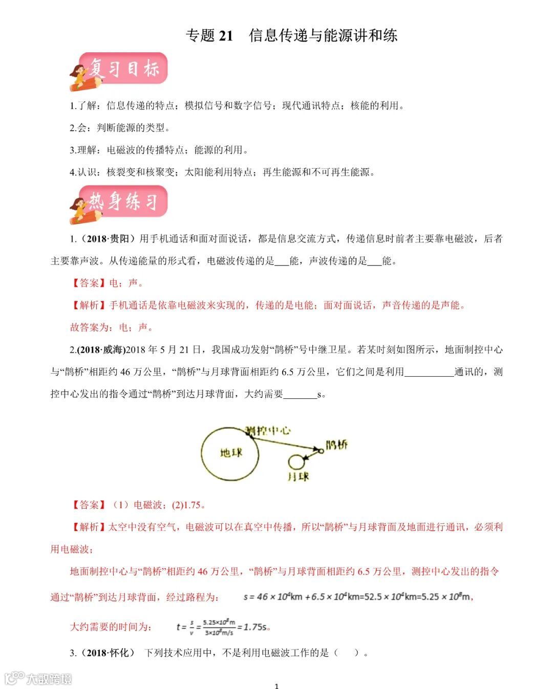 信息传递与能源 | 2020年中考物理一轮复习讲练解析版