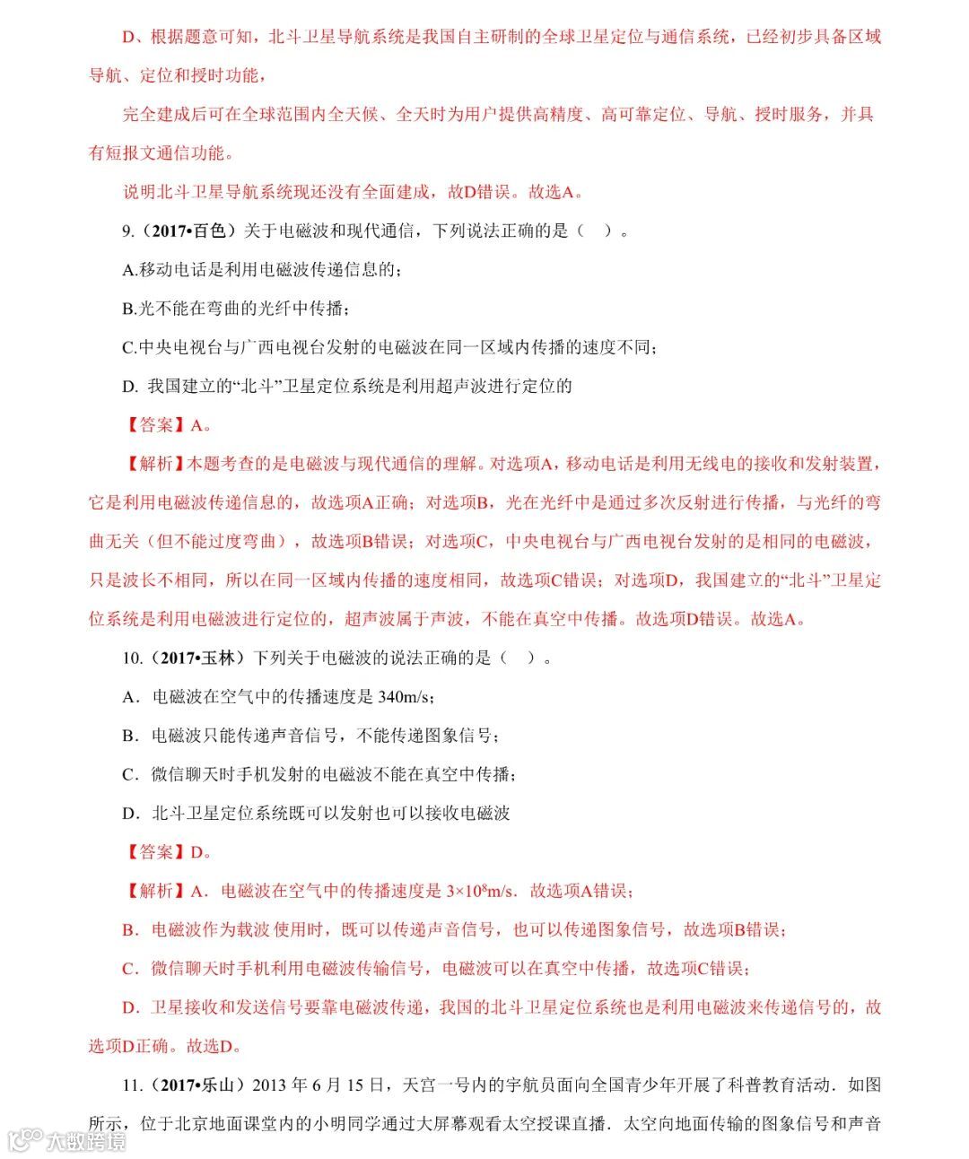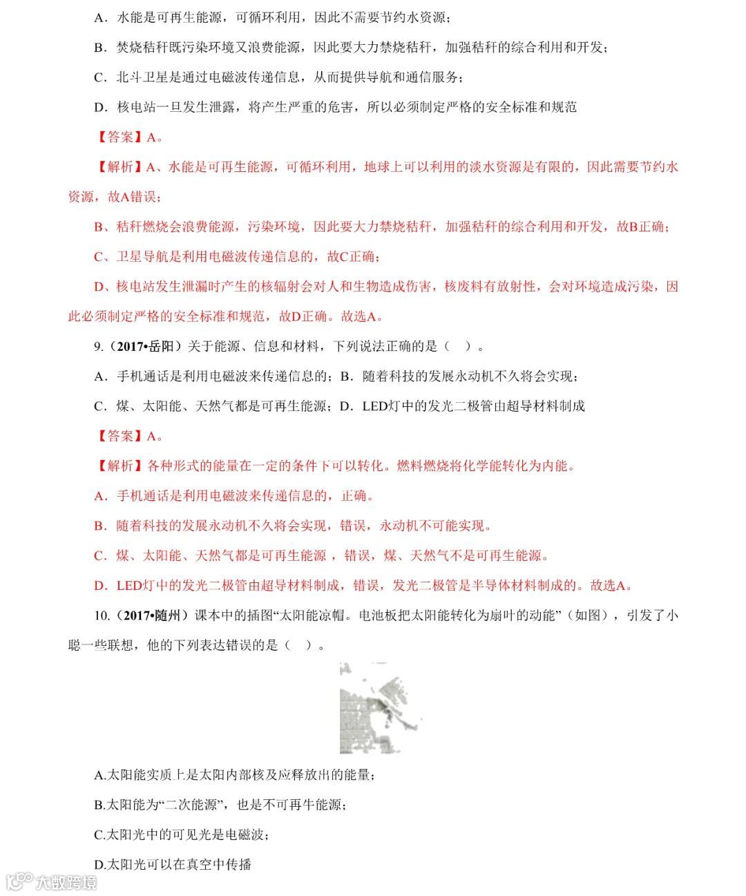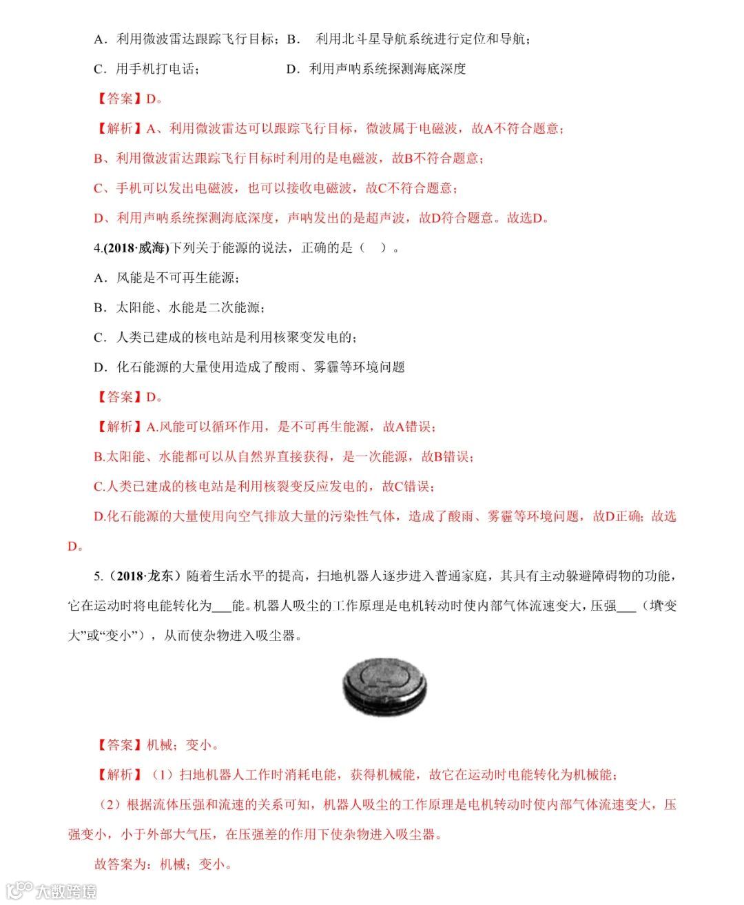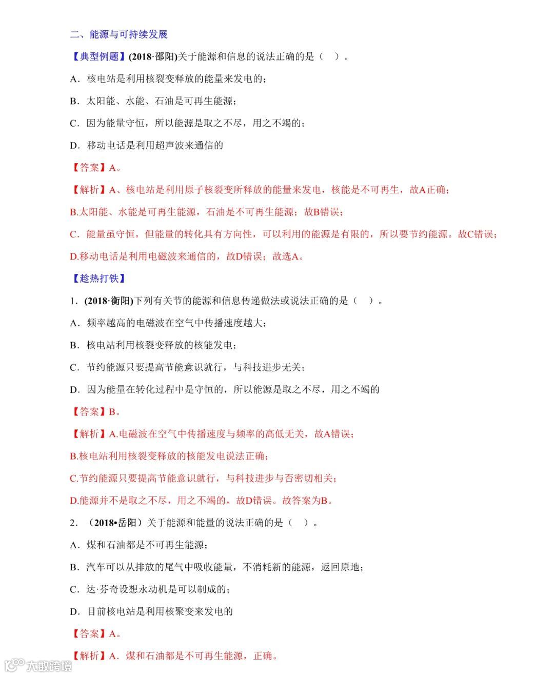 信息传递与能源 | 2020年中考物理一轮复习讲练解析版