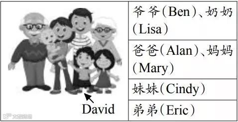 假如你叫 David,下面这张照片是你的全家福。请你根据表格中的信息,以 “My family”为题写一篇短文,向大家介绍一下你的家庭成员。不少于 50 词。