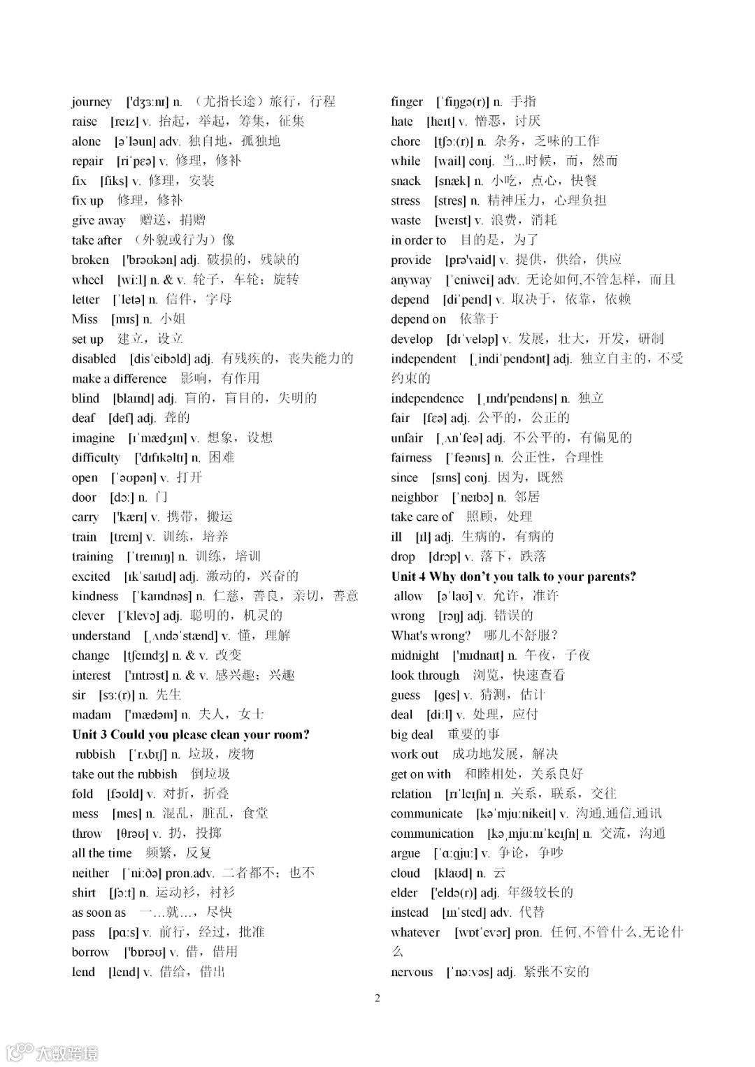 初二英语下册《单词表》(1~10单元、含音标),寒假背起来吧!