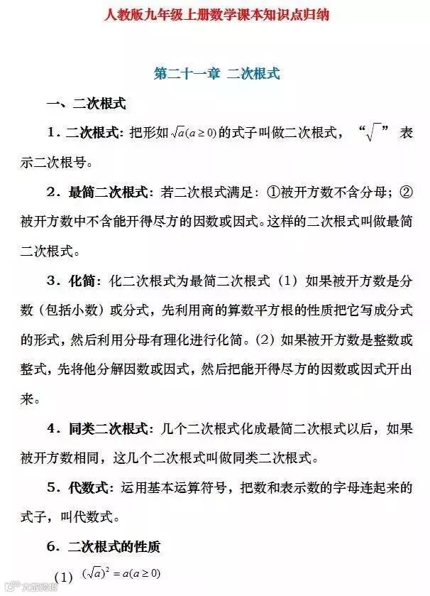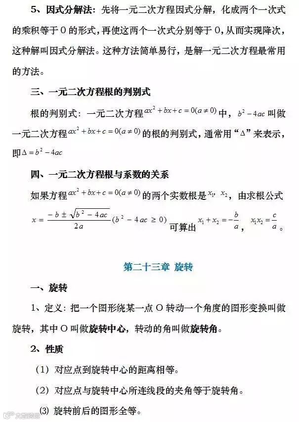 人教版初三数学上学期重要知识点归纳!快为孩子转发收藏!
