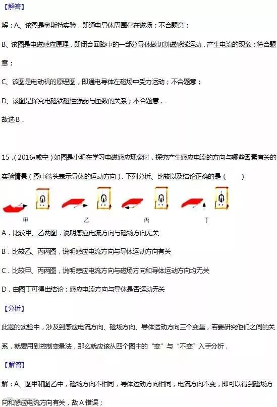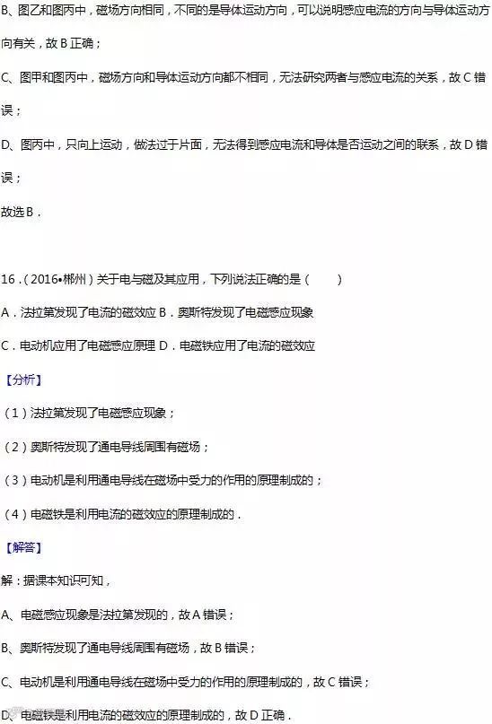 19.感应电流的方向:跟导体运动方向和磁感线方向有关.