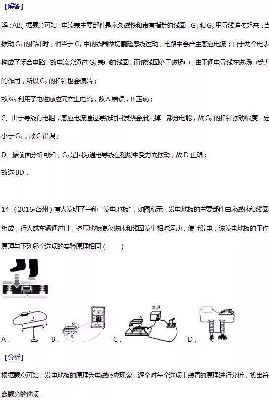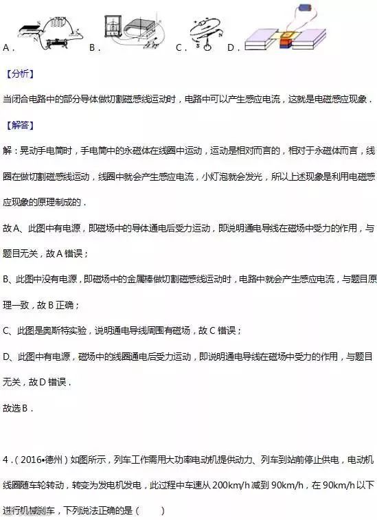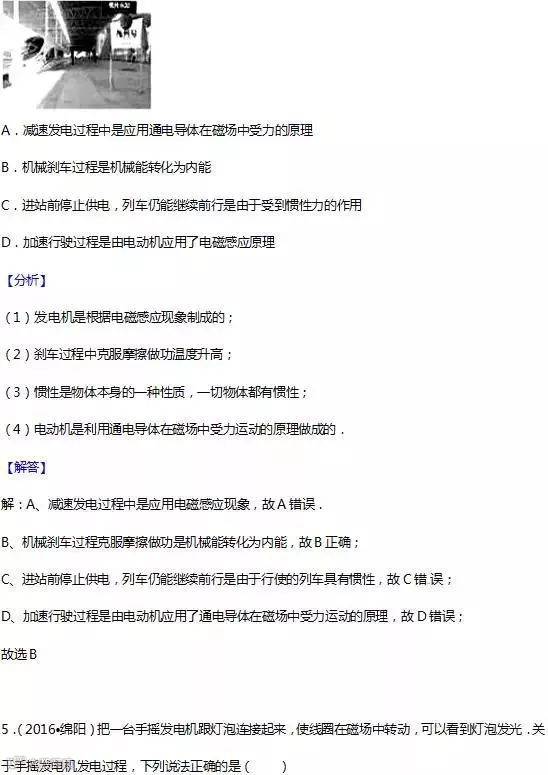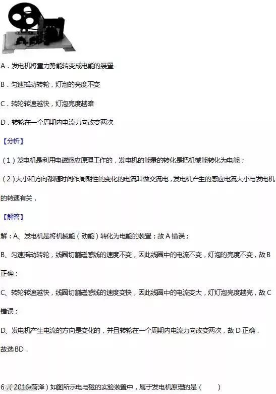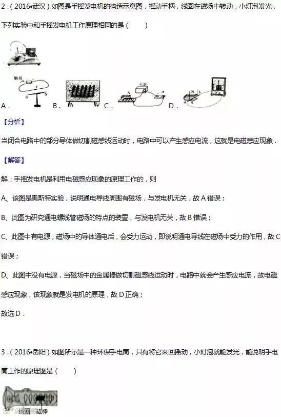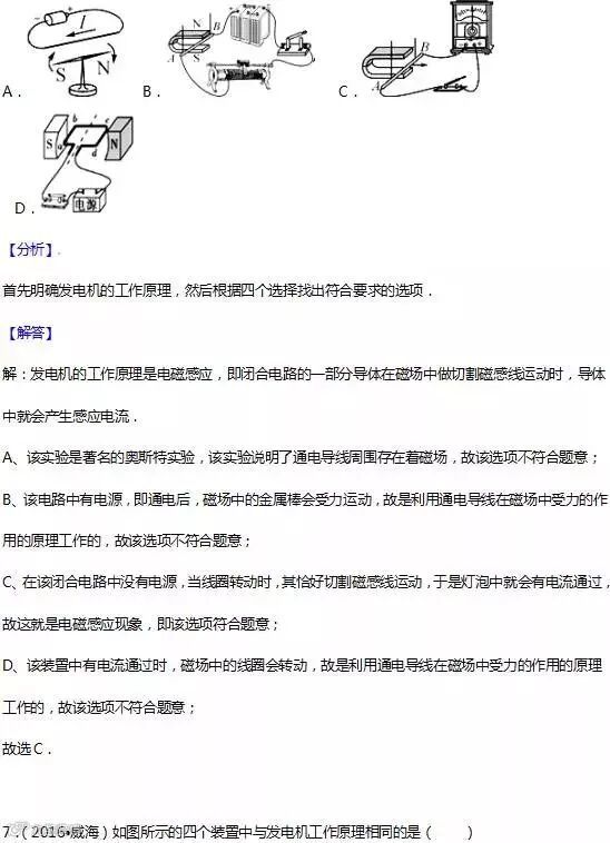 17.电磁感应:闭合电路的一部分导体在磁场中做切割磁感线运动时,导体中就会产生电流,这种现象叫电 磁感应,产生的电流叫感应电流. 应用:发电机