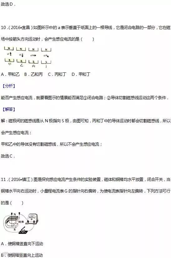18.产生感应电流的条件:①电路必须闭合;②只是电路的一部分导体做切割磁感线运动.
