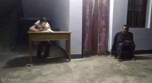 14岁女孩郭翠珠,因要上网课,家里又没网络,所以只能来村支部蹭网学习,父亲默默地蹲坐在角落陪伴女儿。