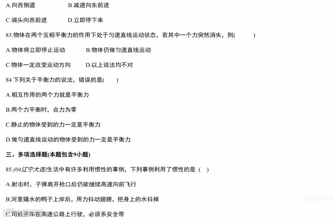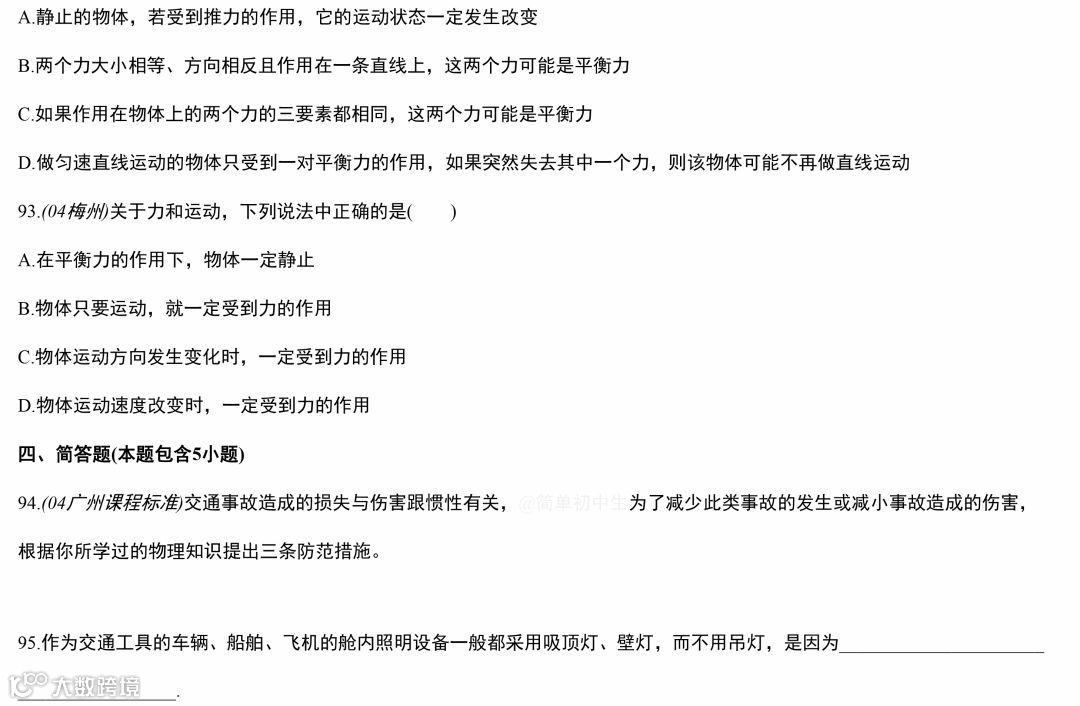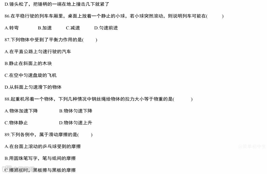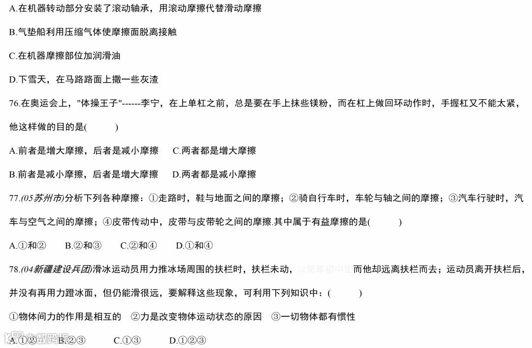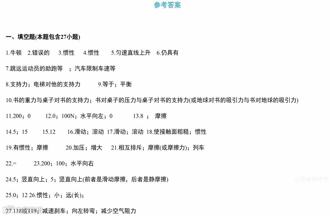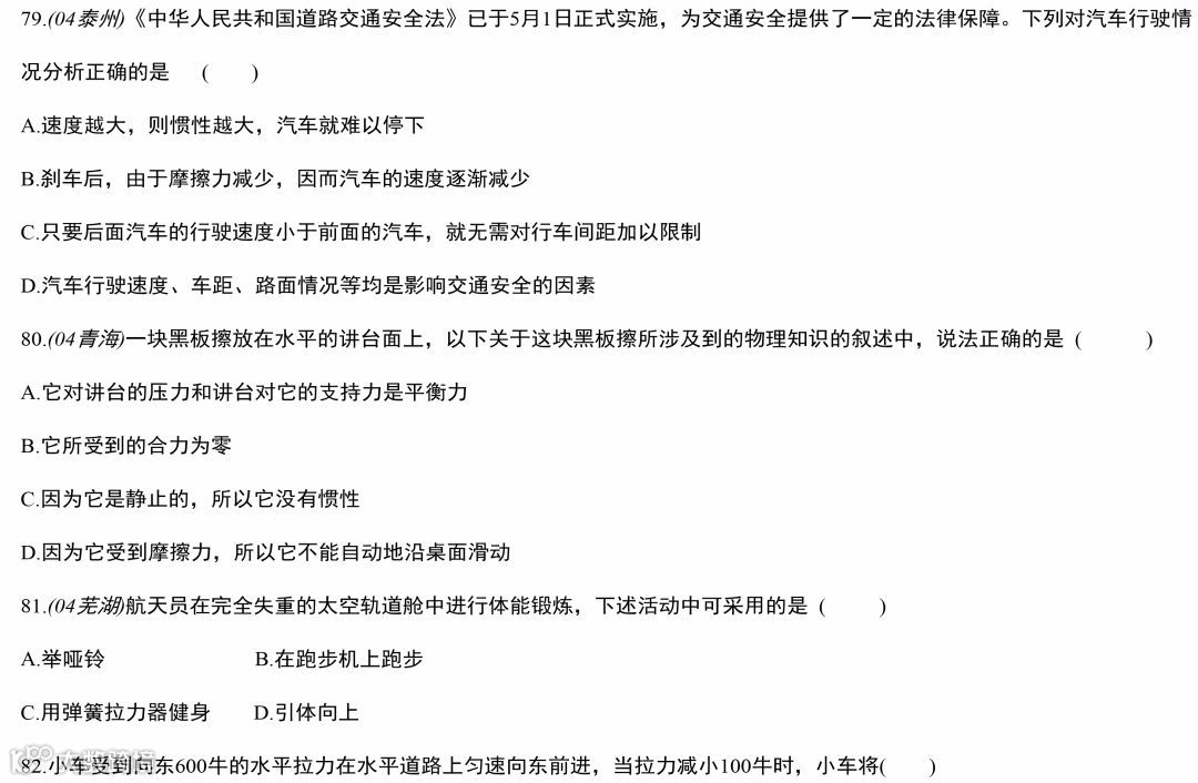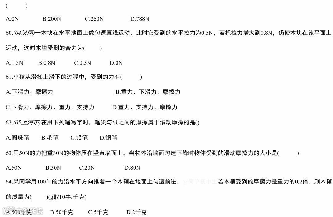 中考物理运动和力专题复习,做完这119道经典中考真题,物理成绩至少提高20分!