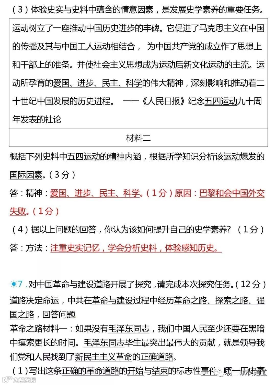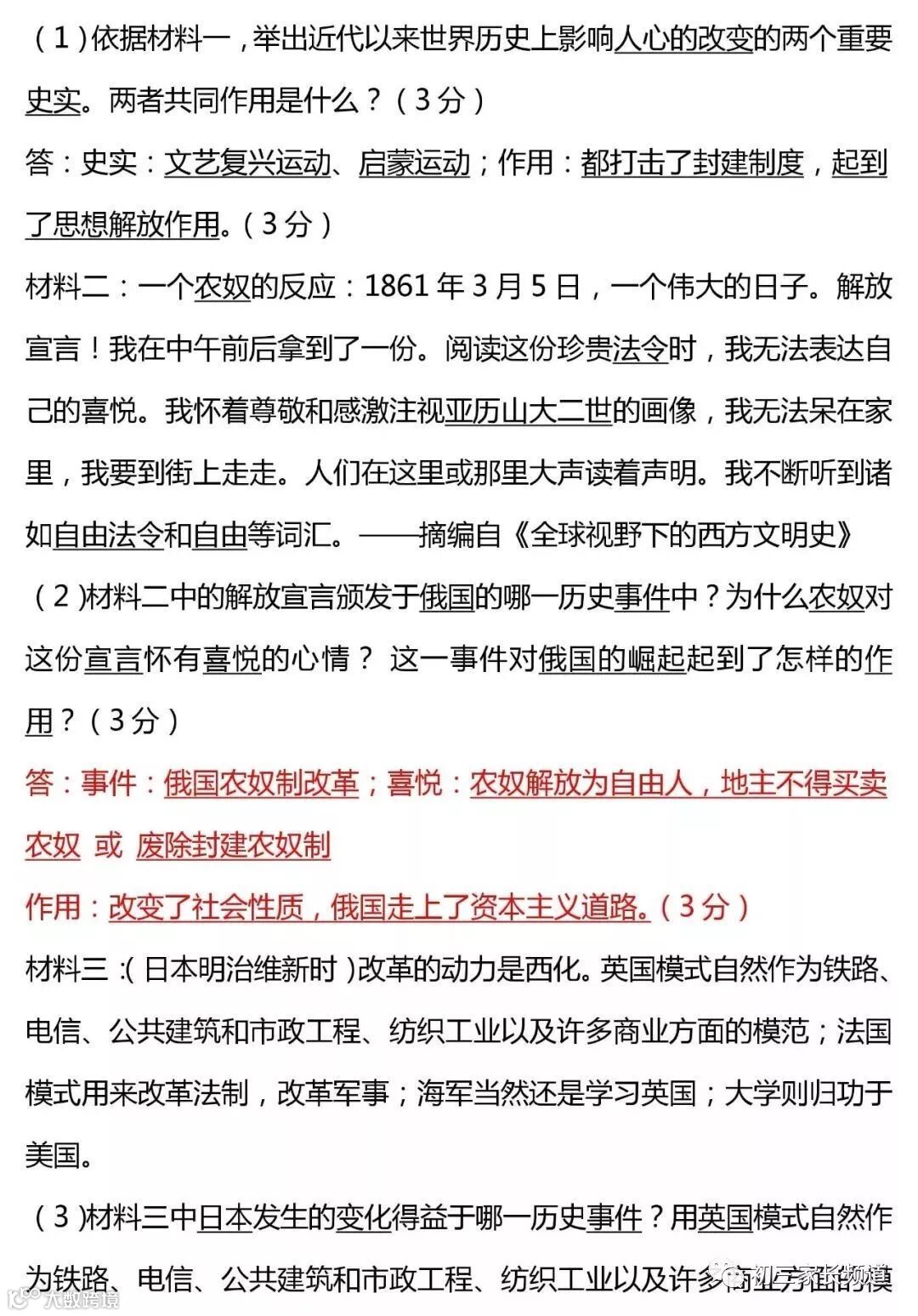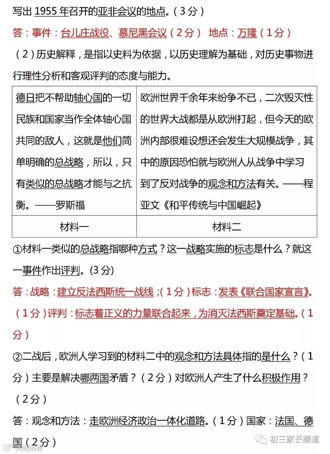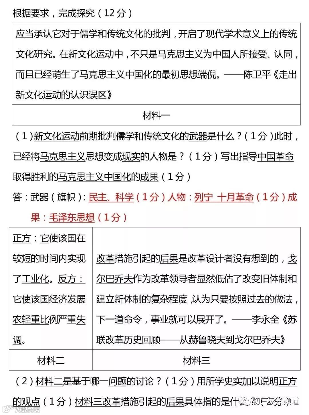 历史材料分析专题一(含答案)