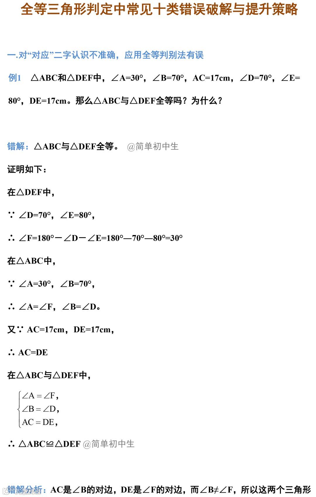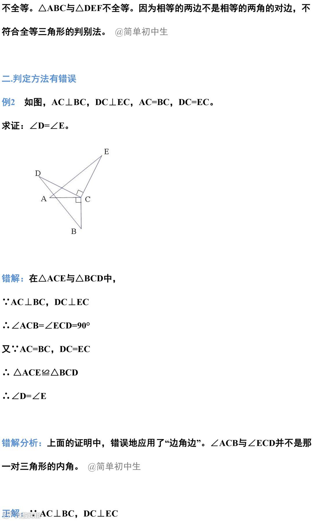 其中,全等三角形的判定常以大题形式出现,也是同学们容易出现失误的题目之一。