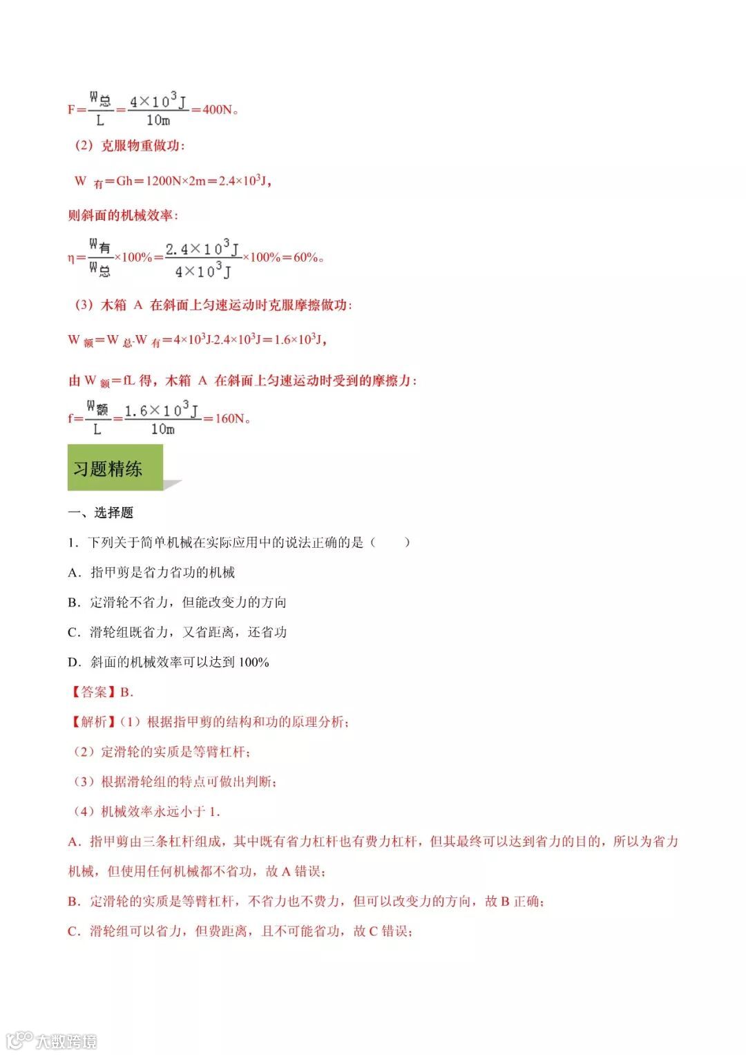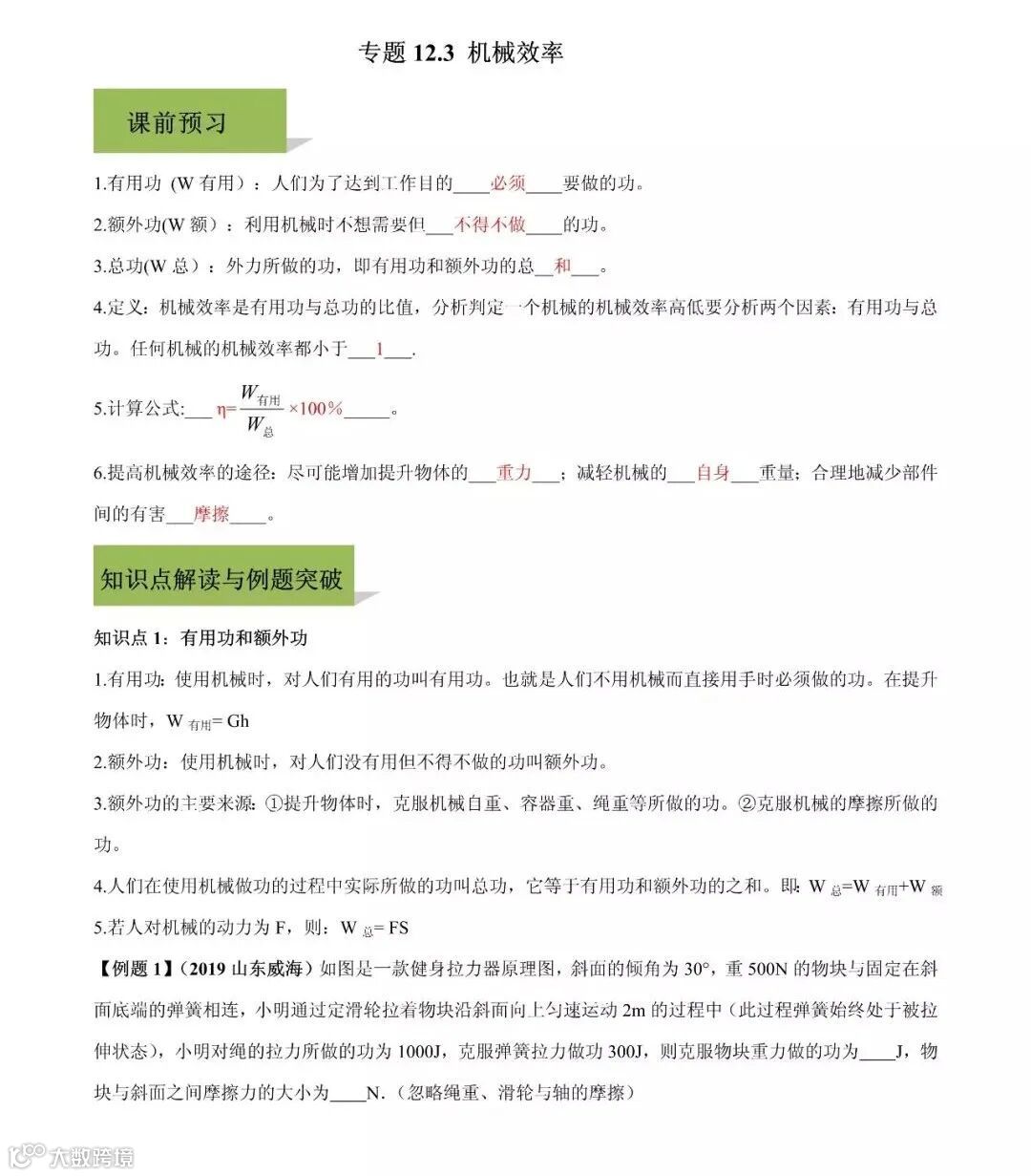 机械效率 | 2020学年八年级下册物理精讲精练