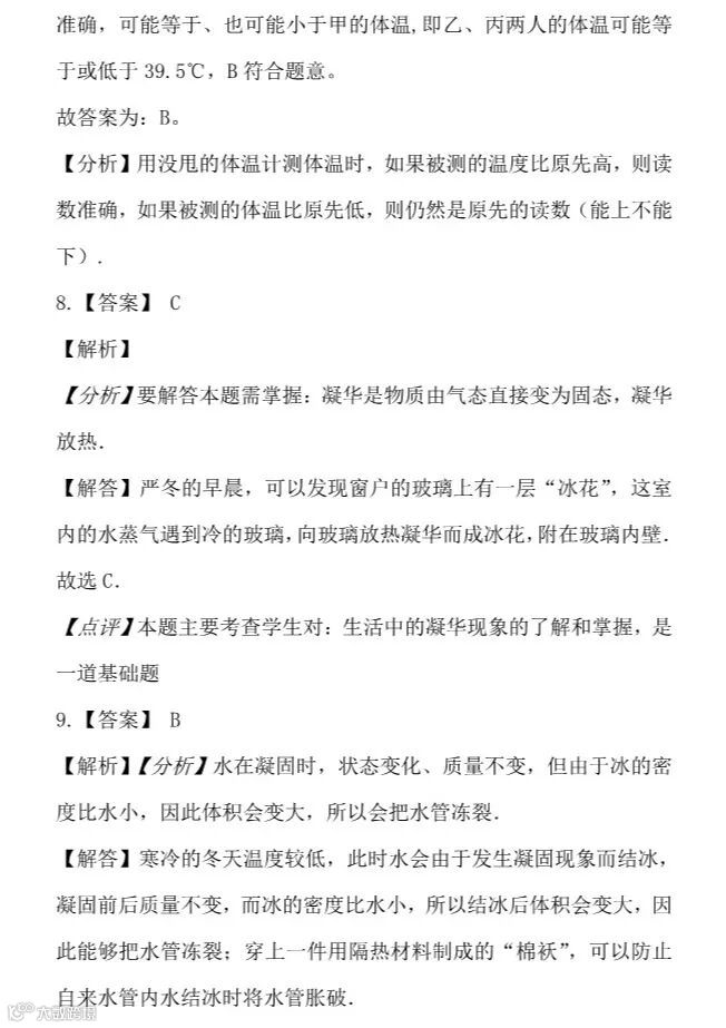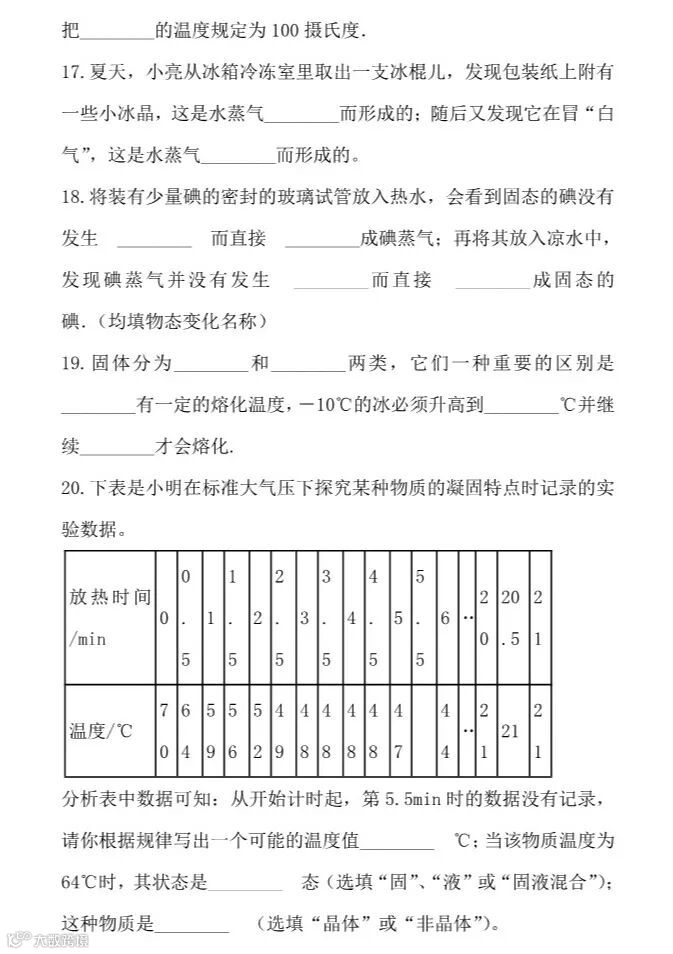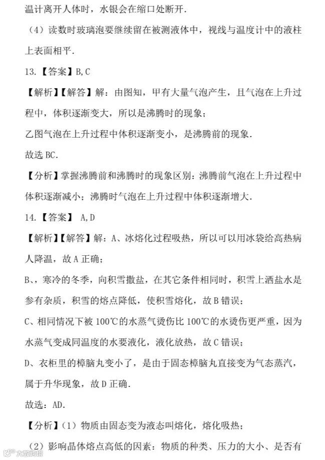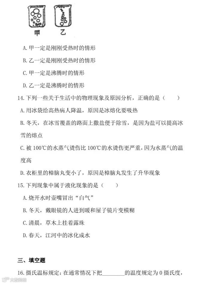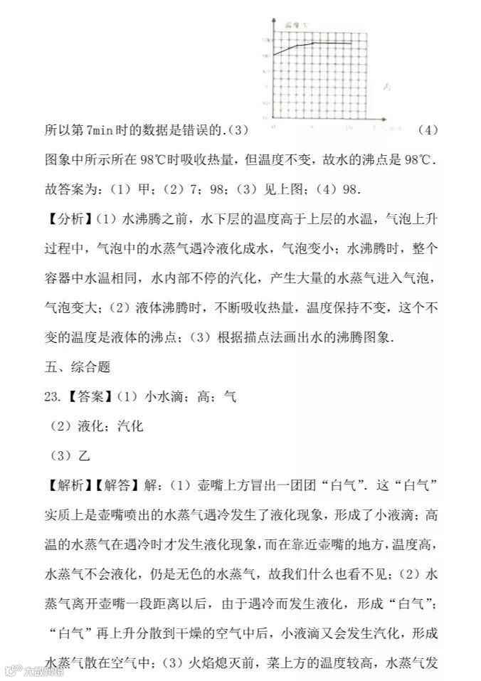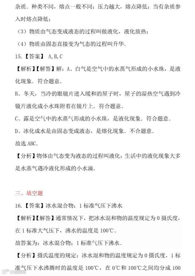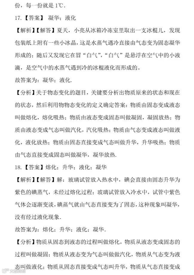 干货 | 人教版八年级上册“物态变化”提升训练,看看你掌握的怎么样
