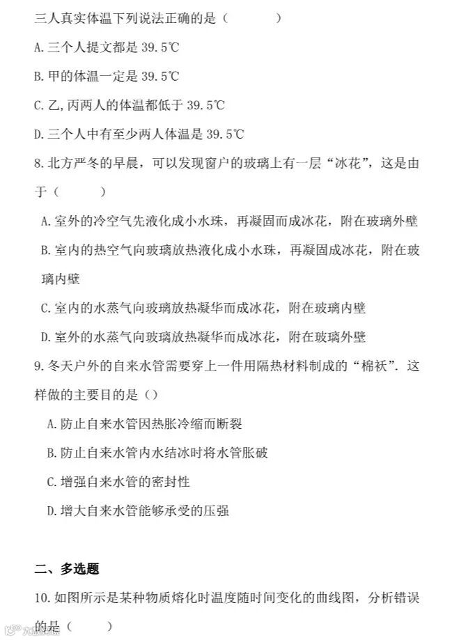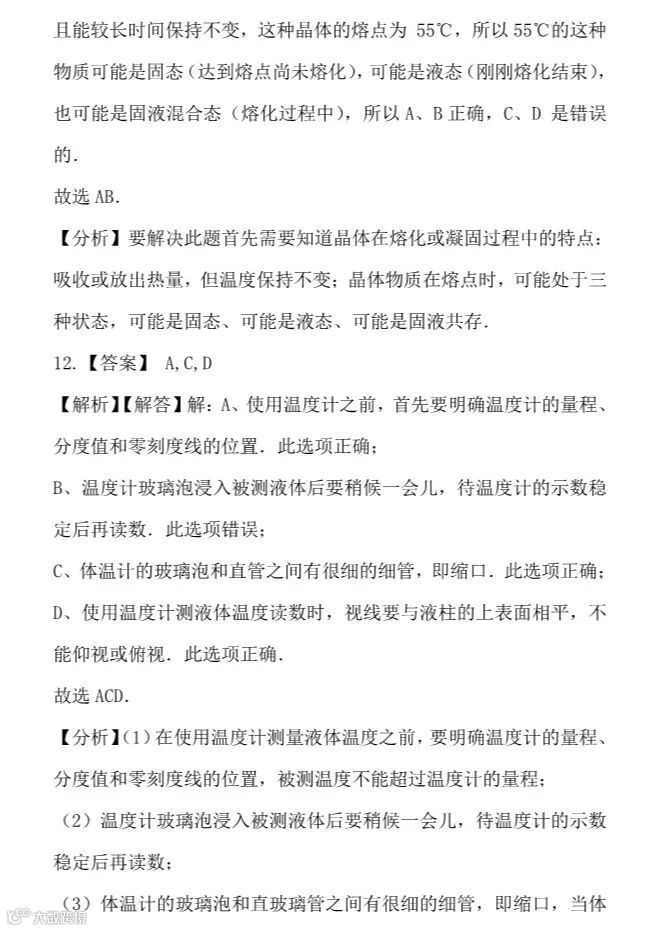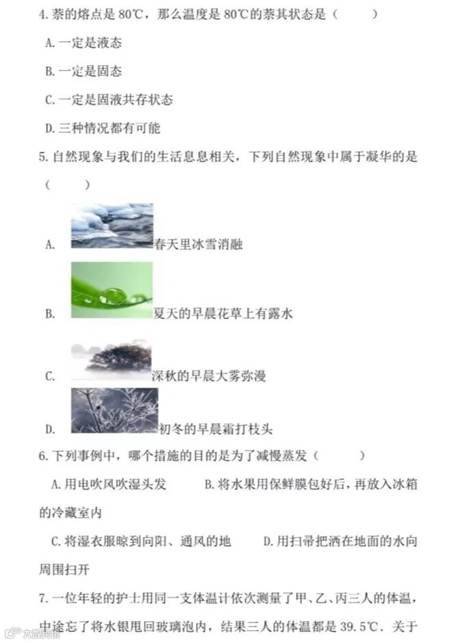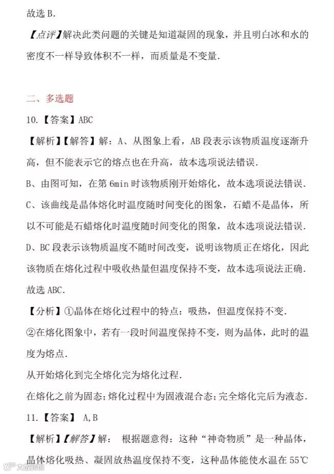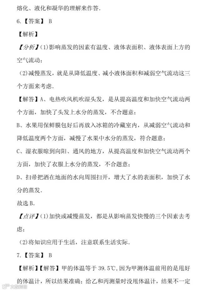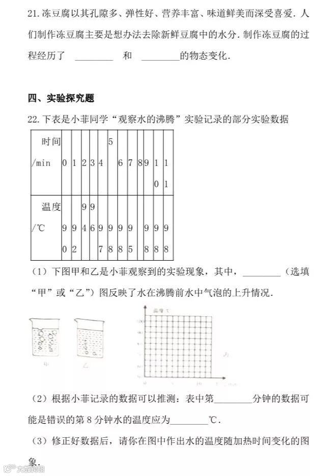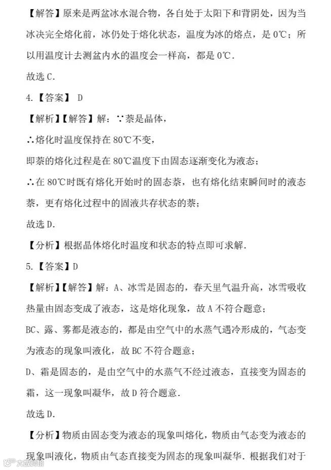干货 | 人教版八年级上册“物态变化”提升训练,看看你掌握的怎么样