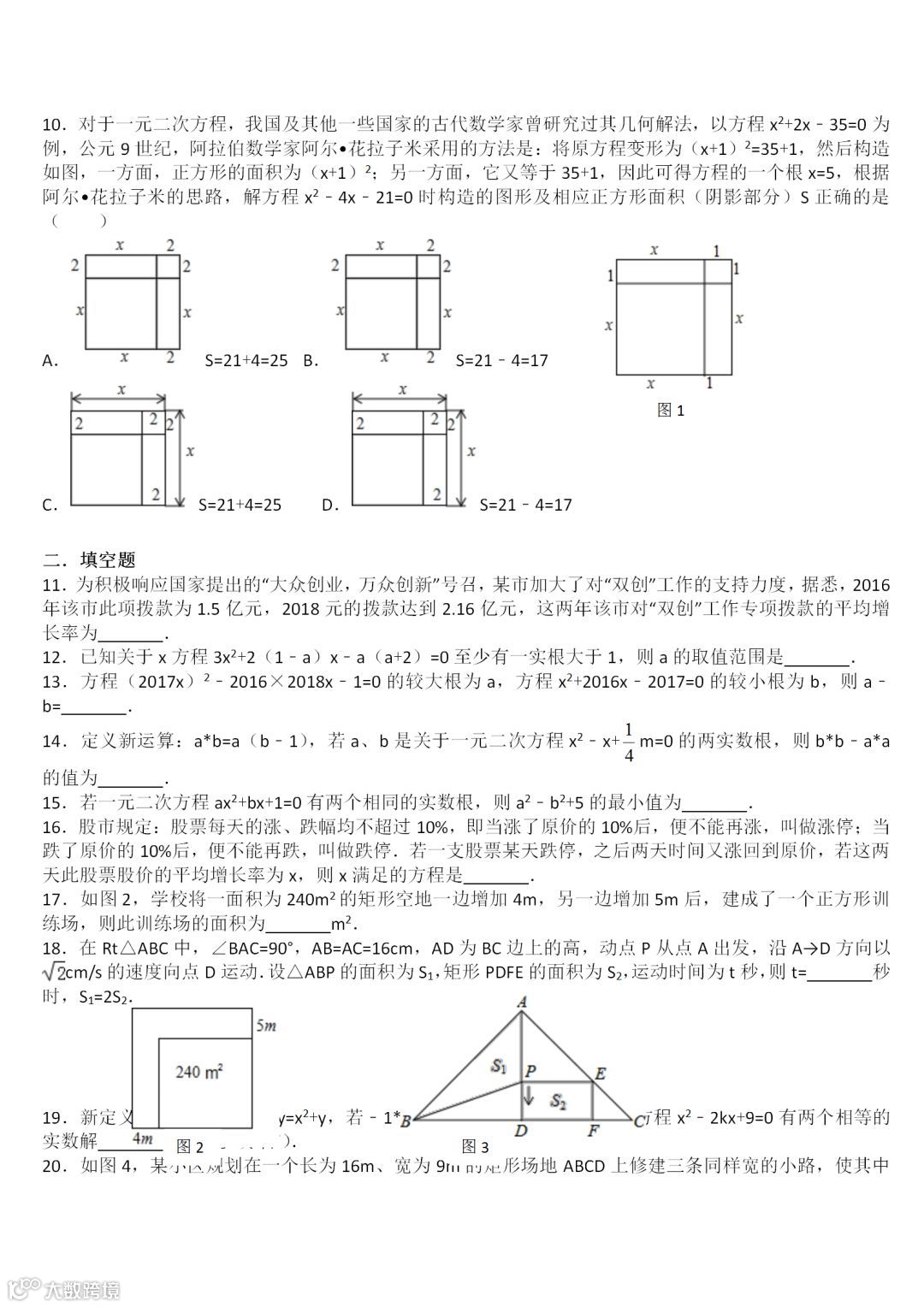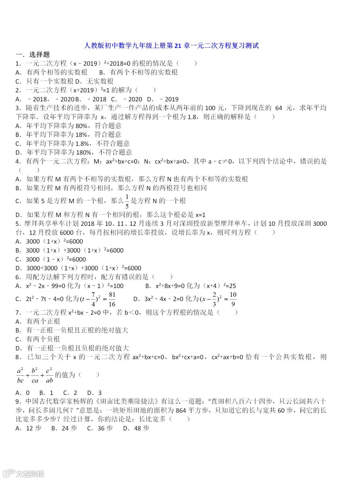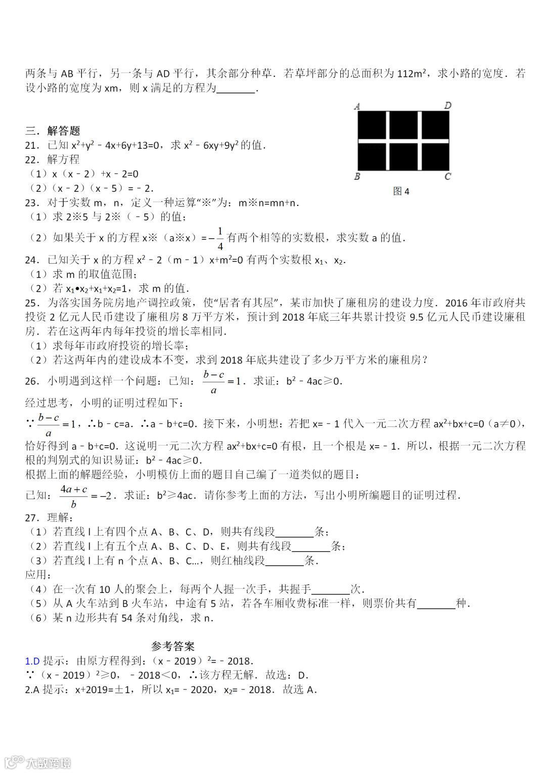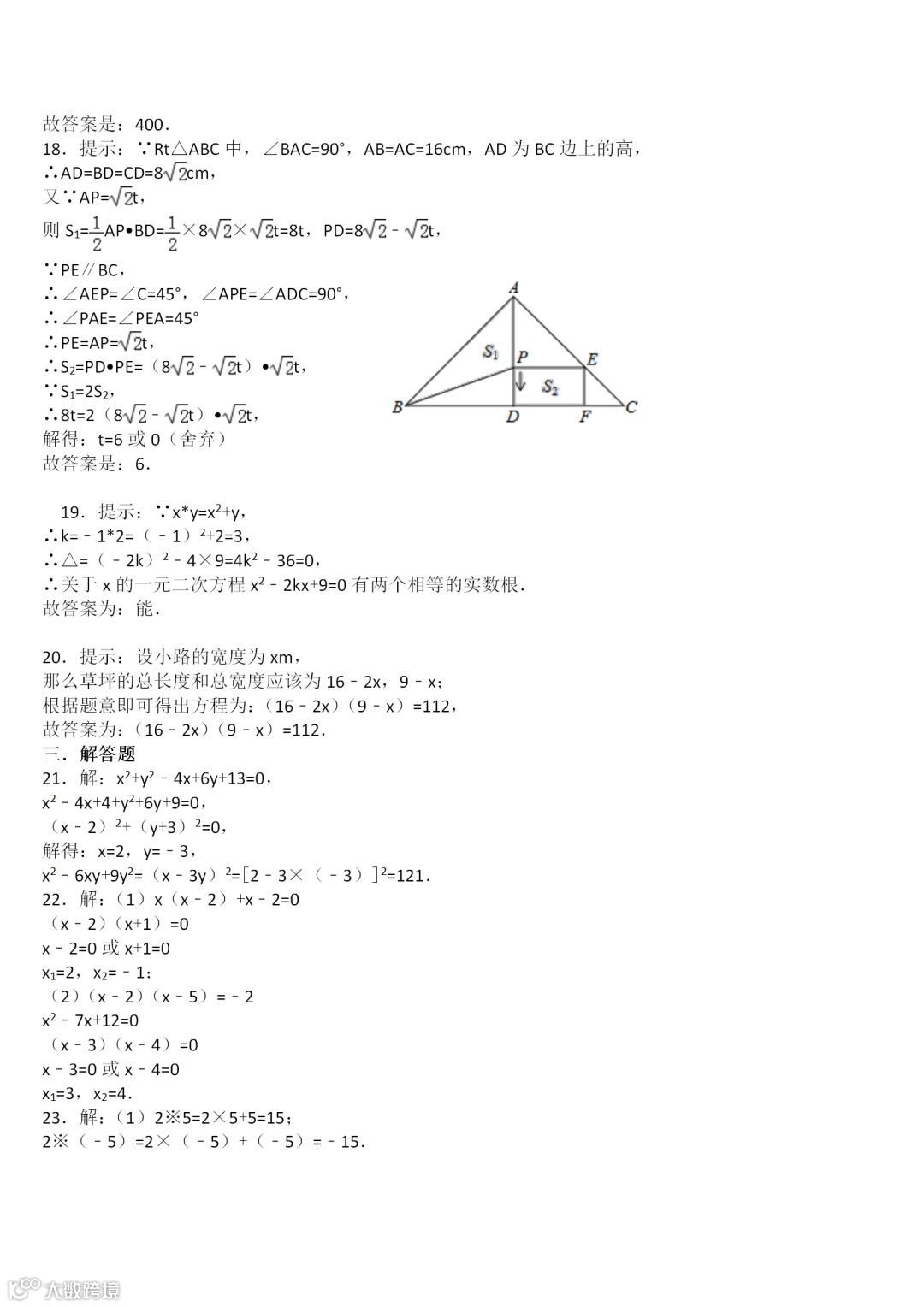 单元复习 | 人教版九年级上册第21章一元二次方程复习测试