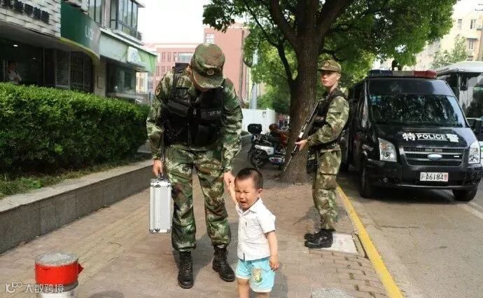 2岁宝宝在路上 遇到外出执勤的武警爸爸,一边哭一边紧紧拽住爸爸的裤腿,怎么都不放手。这个小宝宝已经多天没有见到爸爸了。