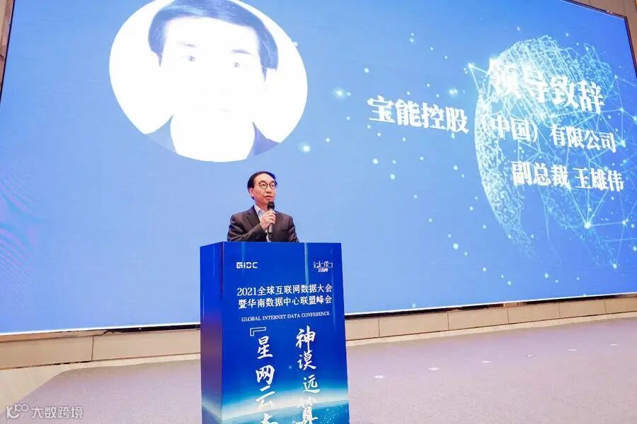 2021年4月15日,GIDC全球互联网数据大会暨华南数据中心联盟峰会于深圳召开。会上,联合主办方宝能控股(中国)有限公司副总裁王雄伟先生为大会作开场致辞。