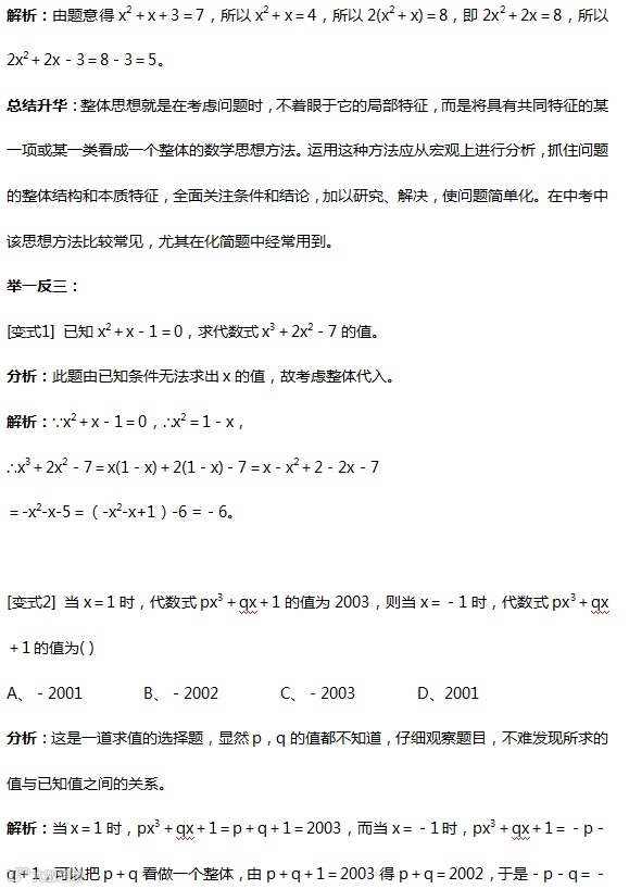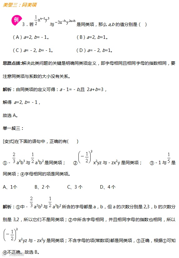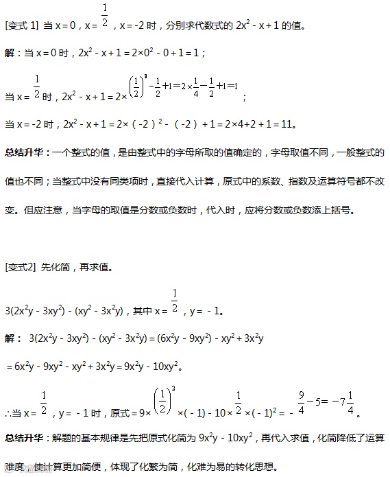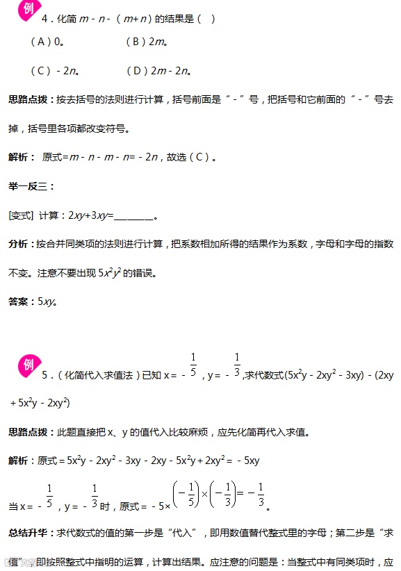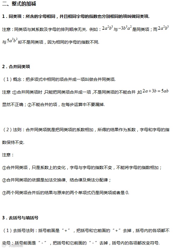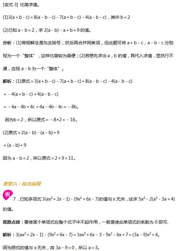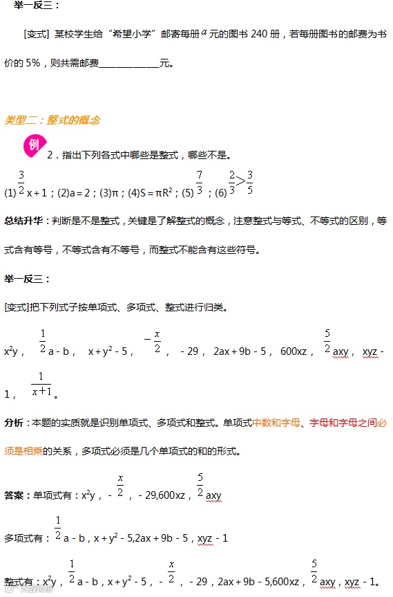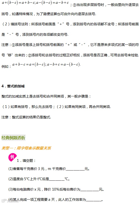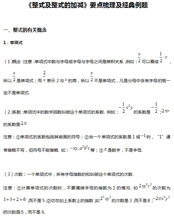 人教版数学七上第二章《整式及整式的加减》要点梳理及经典例题解析