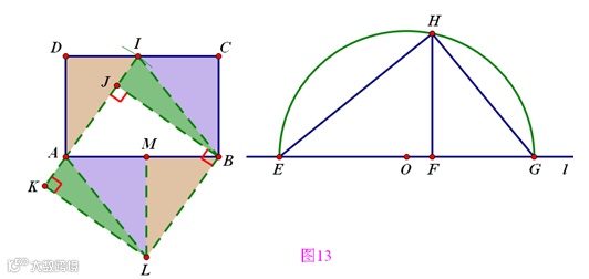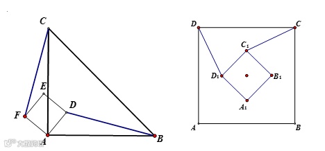 通过射影定理找到正方形的边长,通过平移与旋转完成形状改变