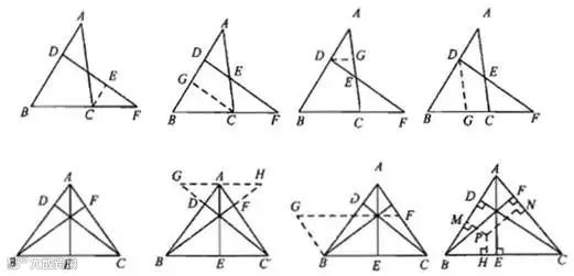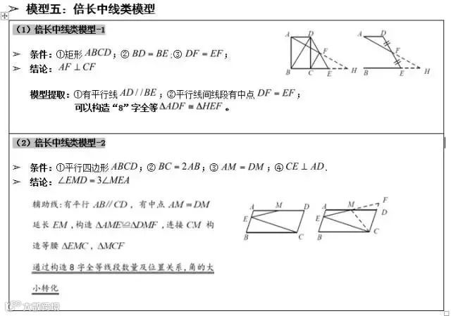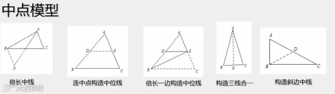 1、 倍长中线;2、倍长类中线;3、中点遇平行延长相交