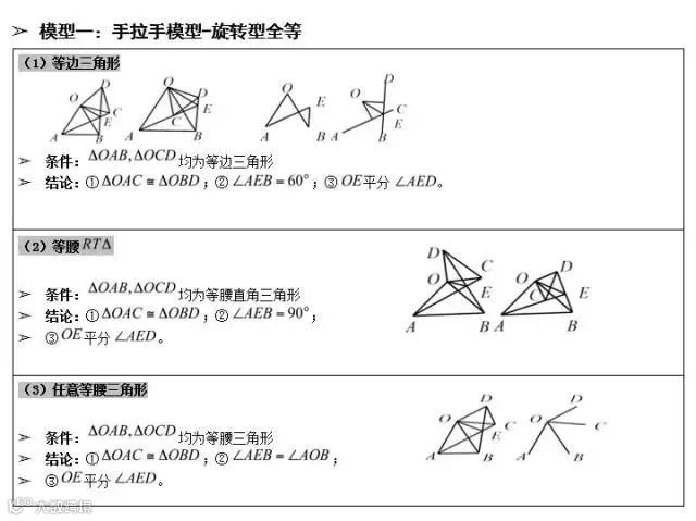 旋转中所成的全等三角形,第三边所成的角是一个经常考察的内容。通过“8”字模型可以证明。
