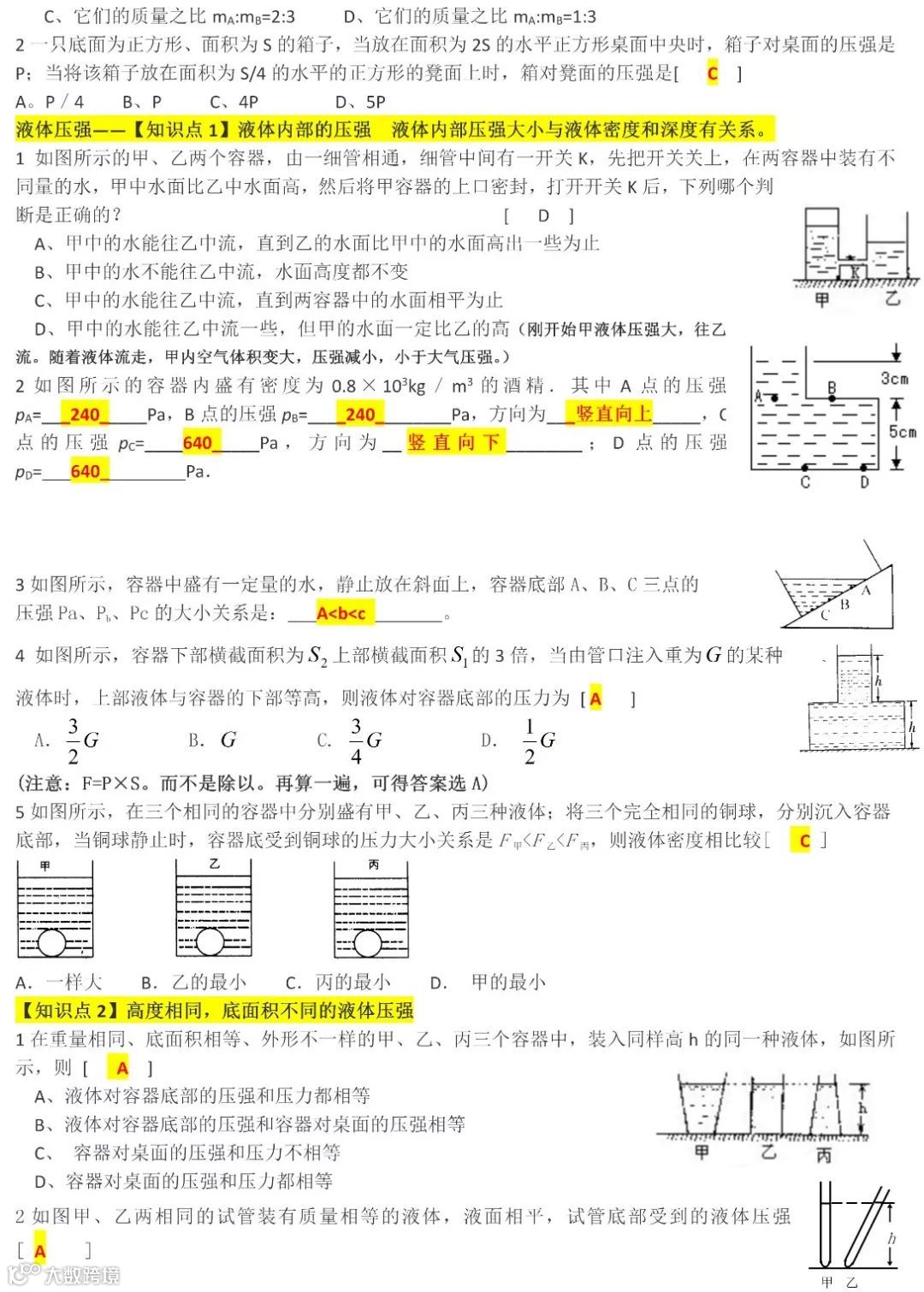 每日一记 | 中考物理压强知识点整理及巩固提升题