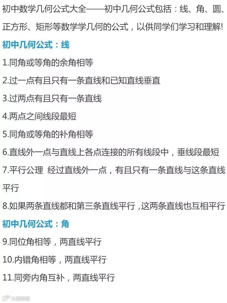 初中数学:几何公式打包整理给你,快收好!