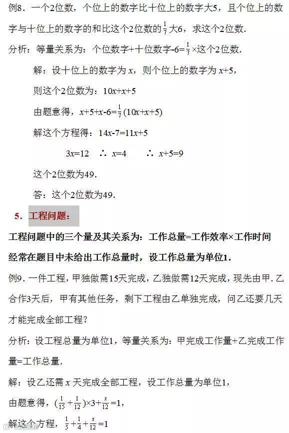 一元一次方程的应用题,是中学阶段学习方程问题的第一个难点,所以同学们需要多加注意,下面,小编推荐给大家这9种类型题,同学们多研究一下吧!