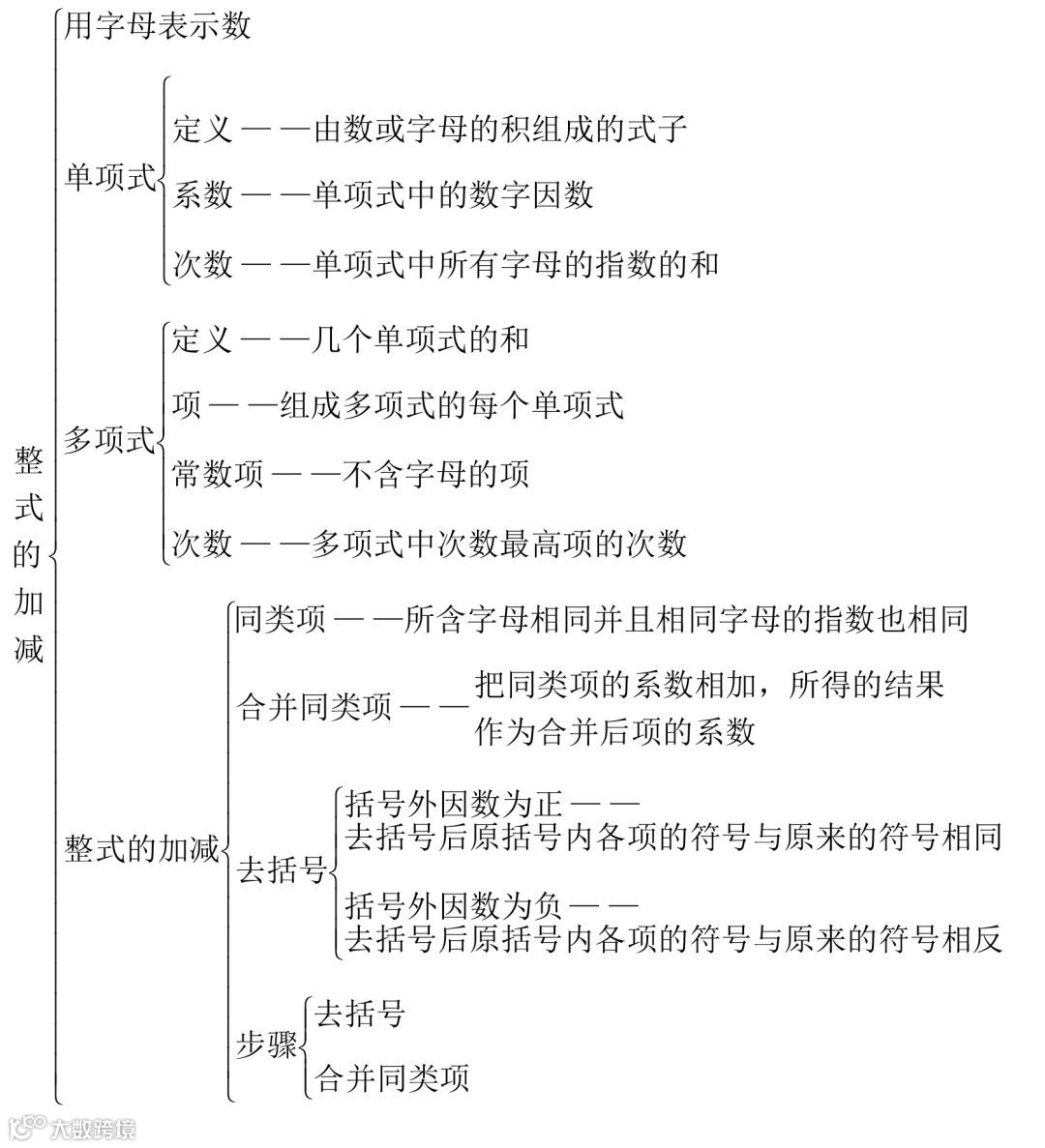 9.一般地,几个整式相加减,如果有括号就先去括号,然后再合并同类项。