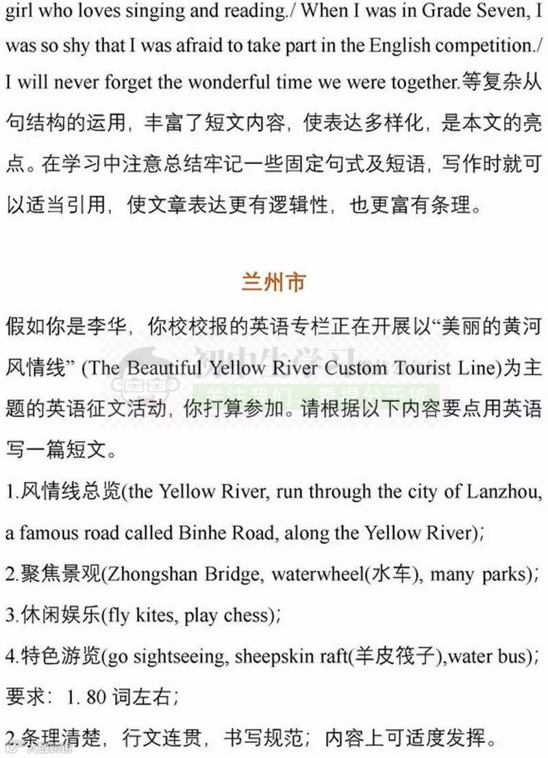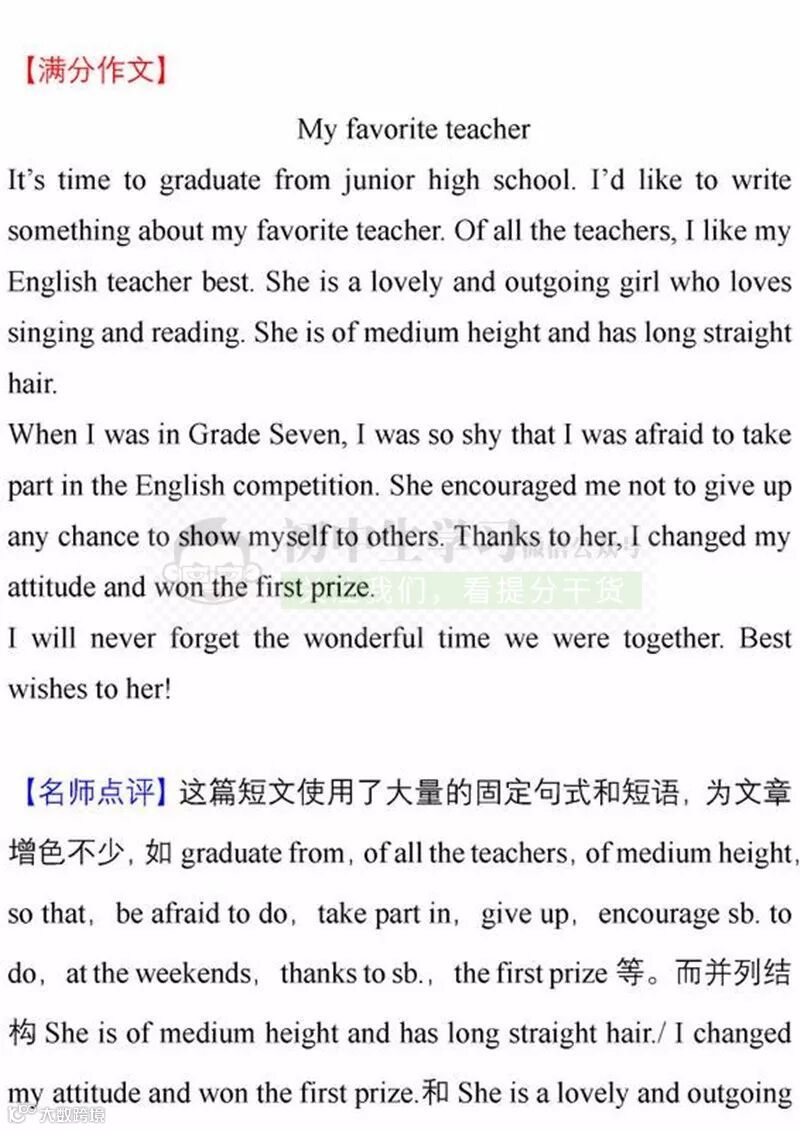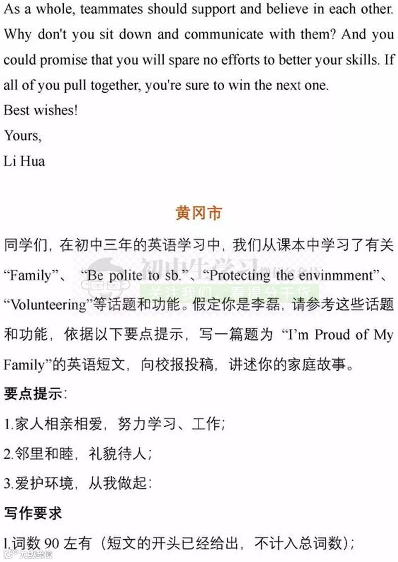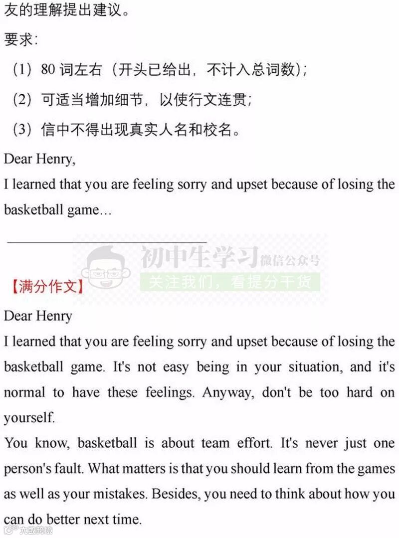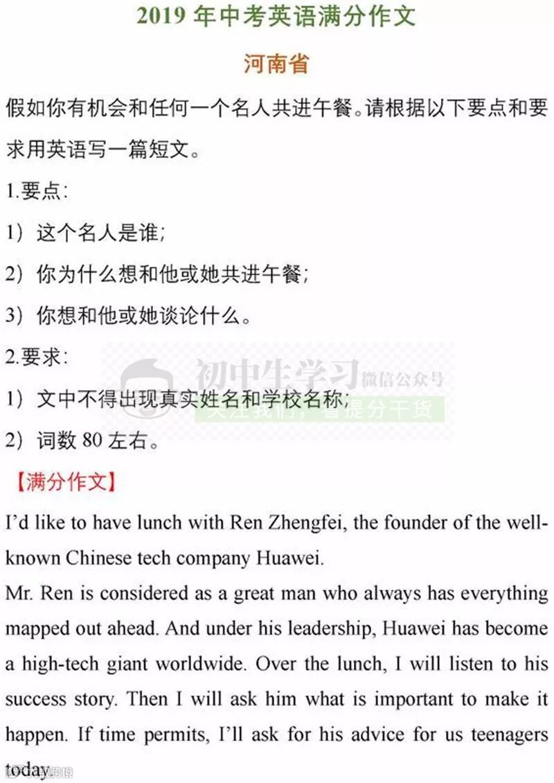 绝对精华:2019中考各地满分英语范文集锦,准初三必看!