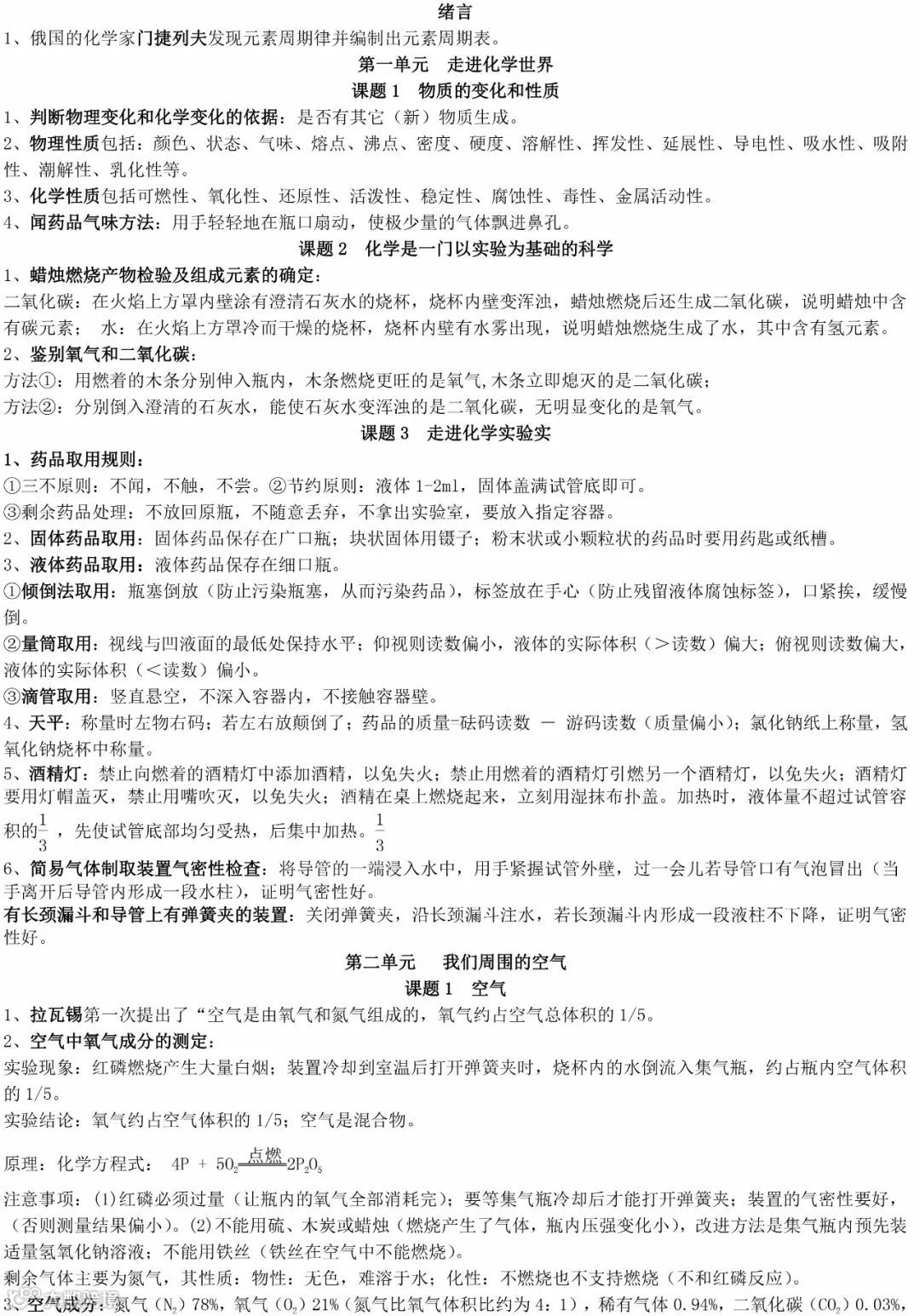 初中化学全册必背知识点大全,孩子暑假预习必备!
