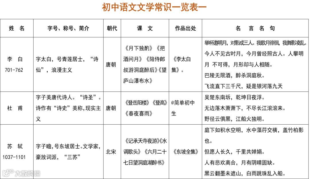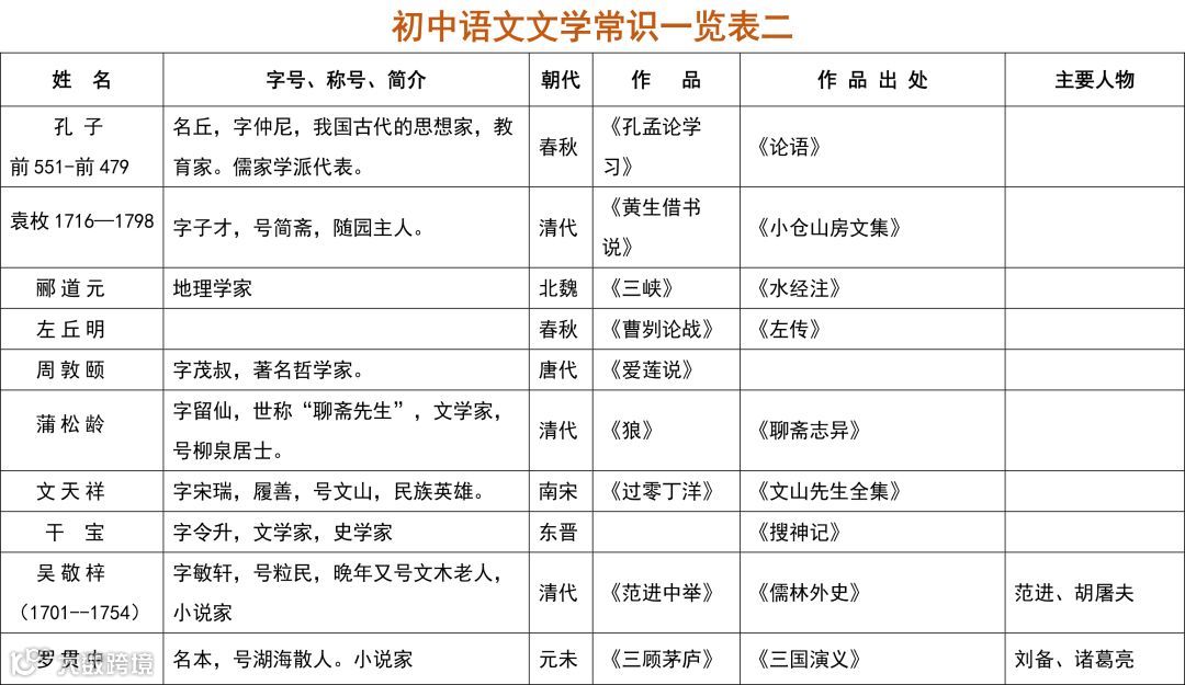 在初中语文中,文学常识作为考试必考内容,主要考察的是学生的知识面,如果同学们要想在考试中取得高分,则要靠平时的积累。