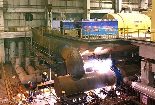 夜幕已经降临,可厂房内依然亮如白昼。在2号机汽动给水泵排汽管道、支架、钢结构预制现场,检修人员正在切割管材、边角打磨,加装保温。吊车将直径约1.5米粗的管道牢牢稳稳地固定好,焊工正在进行管道焊接,噼噼啪啪,火花四溅,一派紧张忙碌的景象。这项工作能否如期完成,不仅关系到2号机组的启动,更为接下来的2号热泵建设奠定管道基础。由于涉及吊装、高空和动火三项特种作业,安全组负责人重点督查,一步不离开现场。工程进度就是一纸军令状,工程监理两只眼睛必须死死盯住工期倒排表,一刻也不敢松懈。