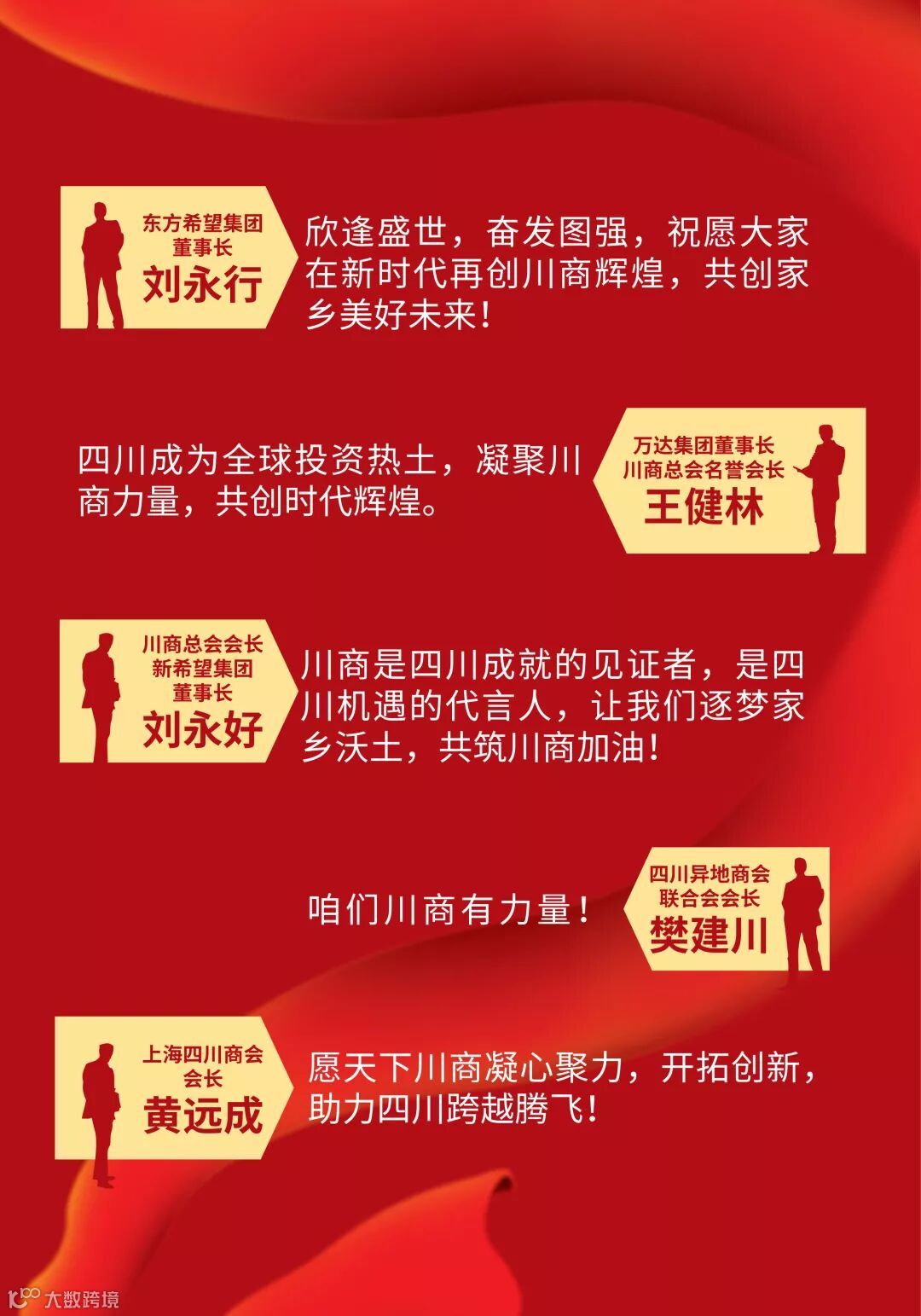 “在新时代再创川商辉煌,共创家乡美好未来!”、“凝聚川商力量,共创时代辉煌”……