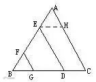 证明:过点E作EH//BC,交AC于H,因为ED//AC,所以四边形CDEH是平行四边形,所以ED=HC,又FG//AC,EH//BC,所以∠AEH=∠B,∠A=∠BFG,又AE=BF,所以△AEH≌△FBG,