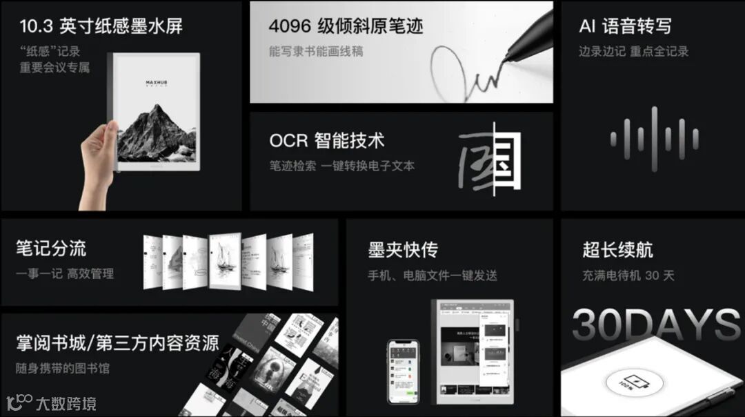 超长续航实力:低功耗电子墨水屏结合高效能电池,数周持久续航,告别电量焦虑,出差、外勤、全天会议从容应对。