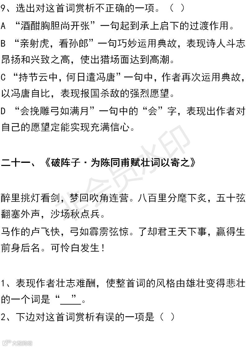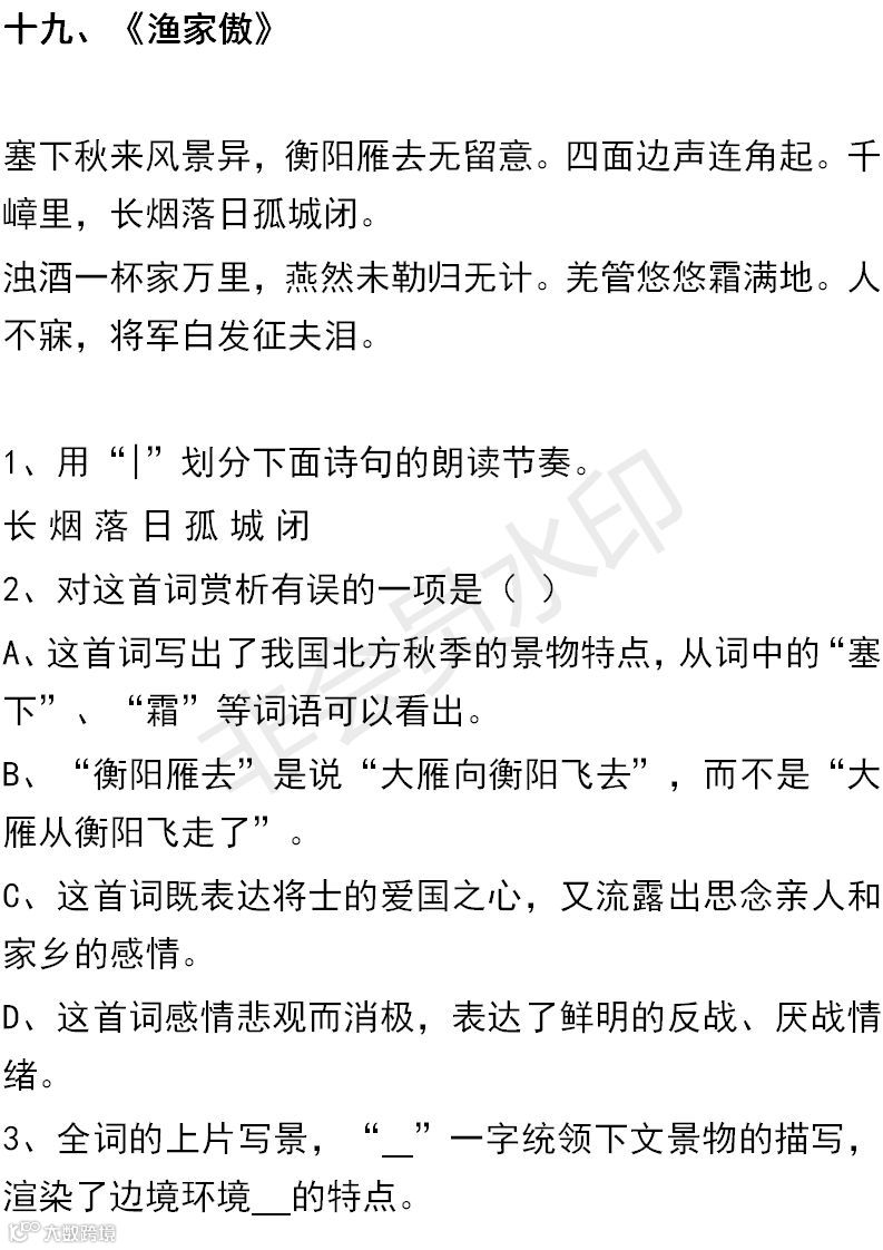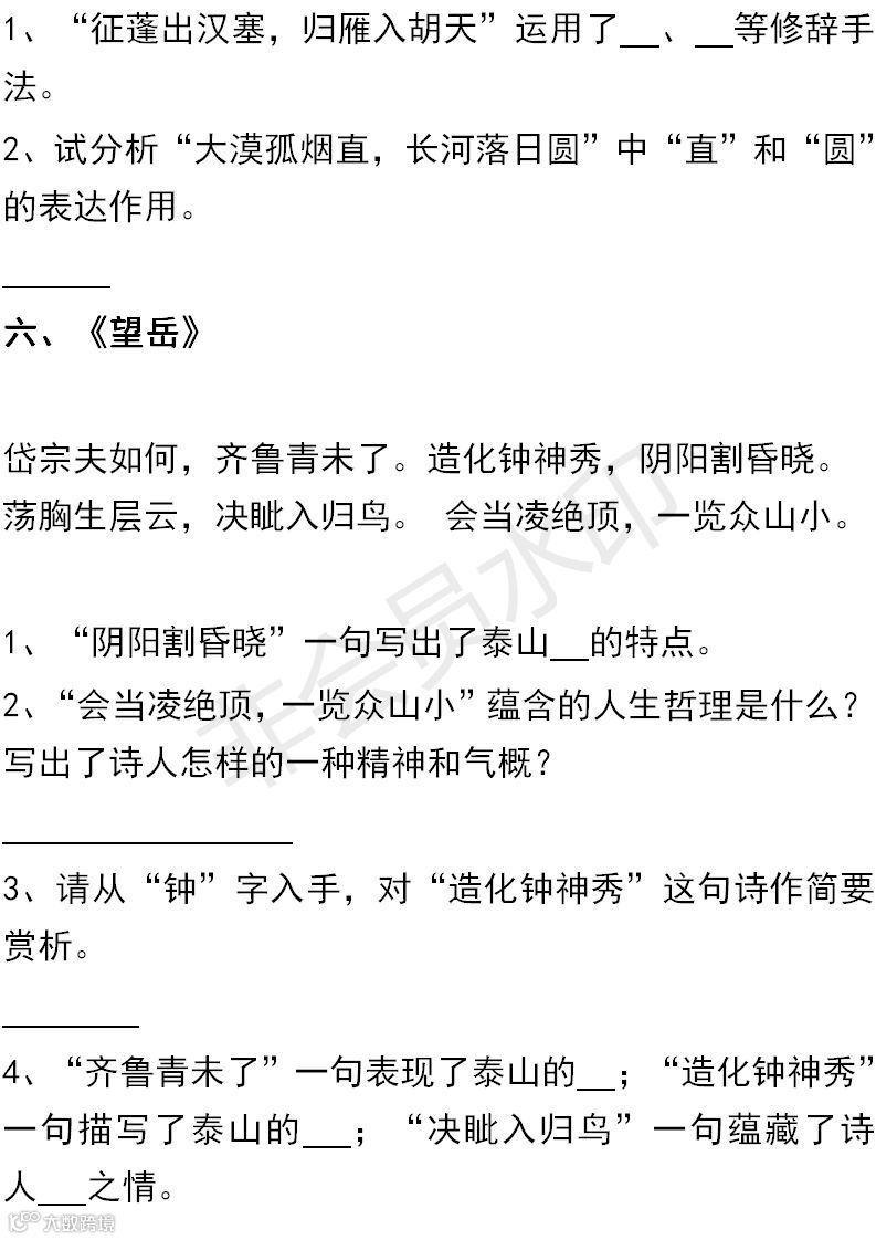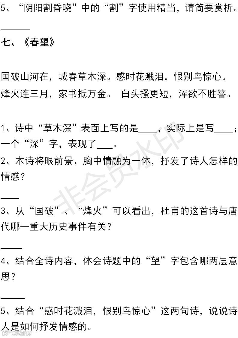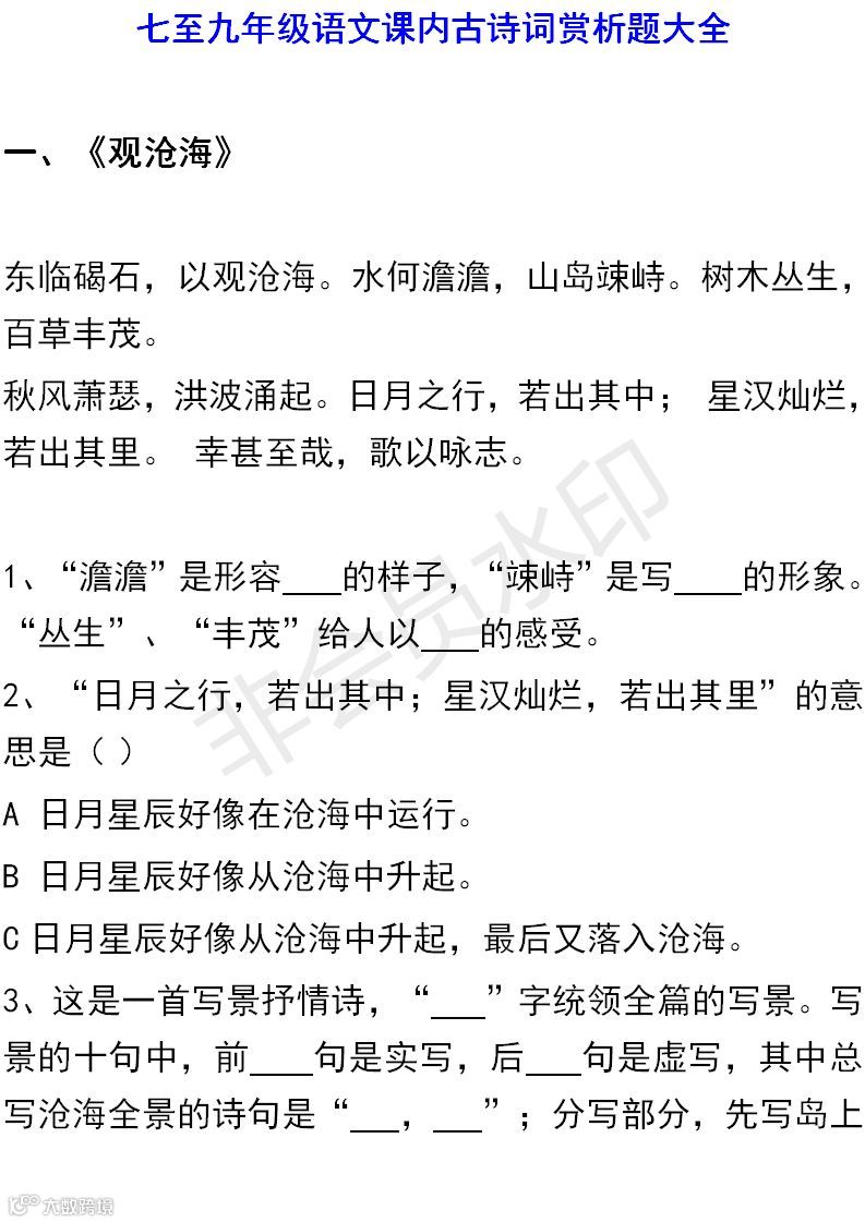 中考复习:七至九年级语文课内古诗词赏析题汇总练习