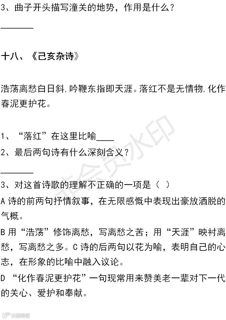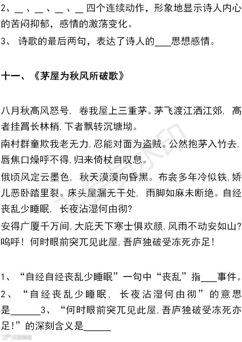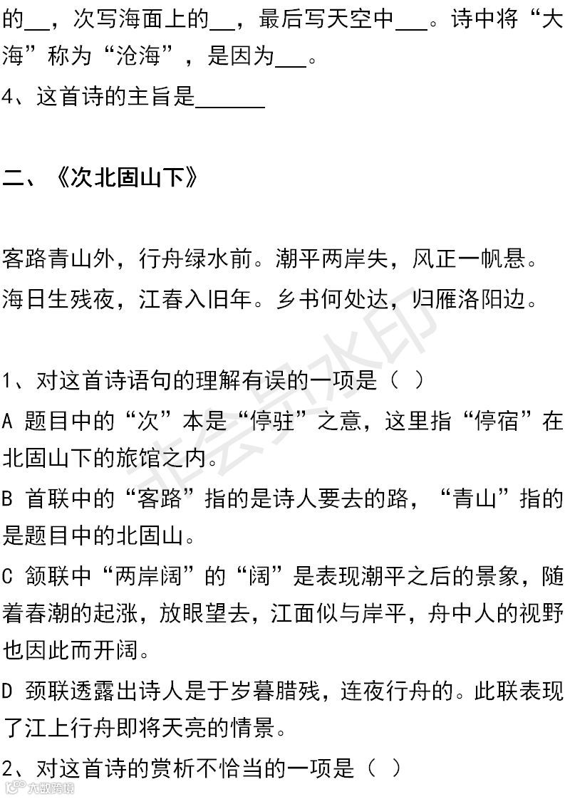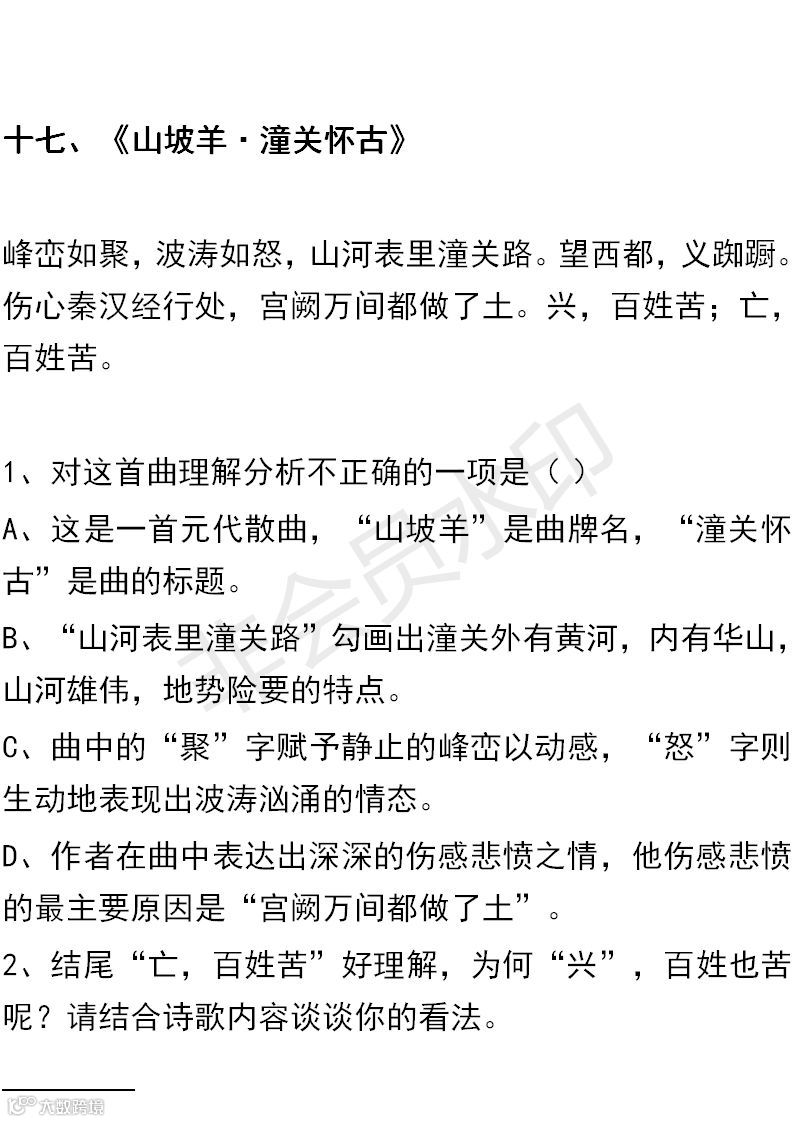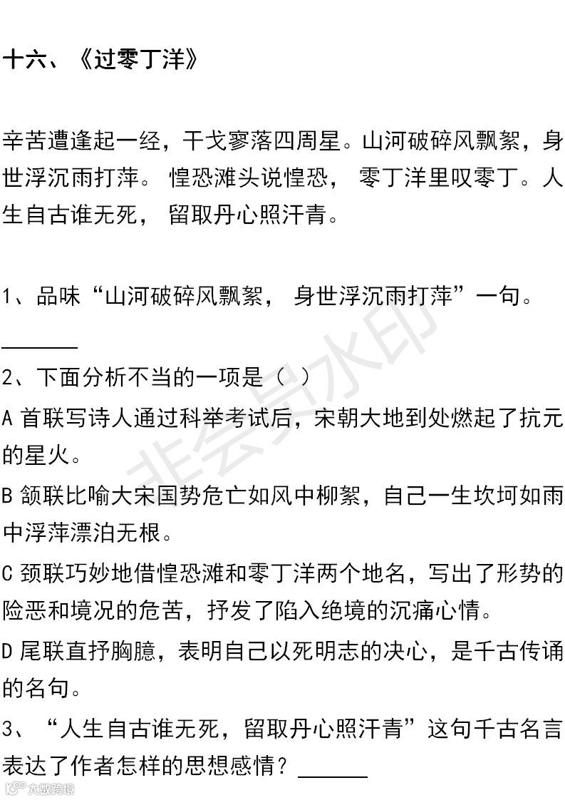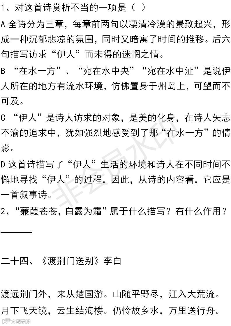 中考复习:七至九年级语文课内古诗词赏析题汇总练习